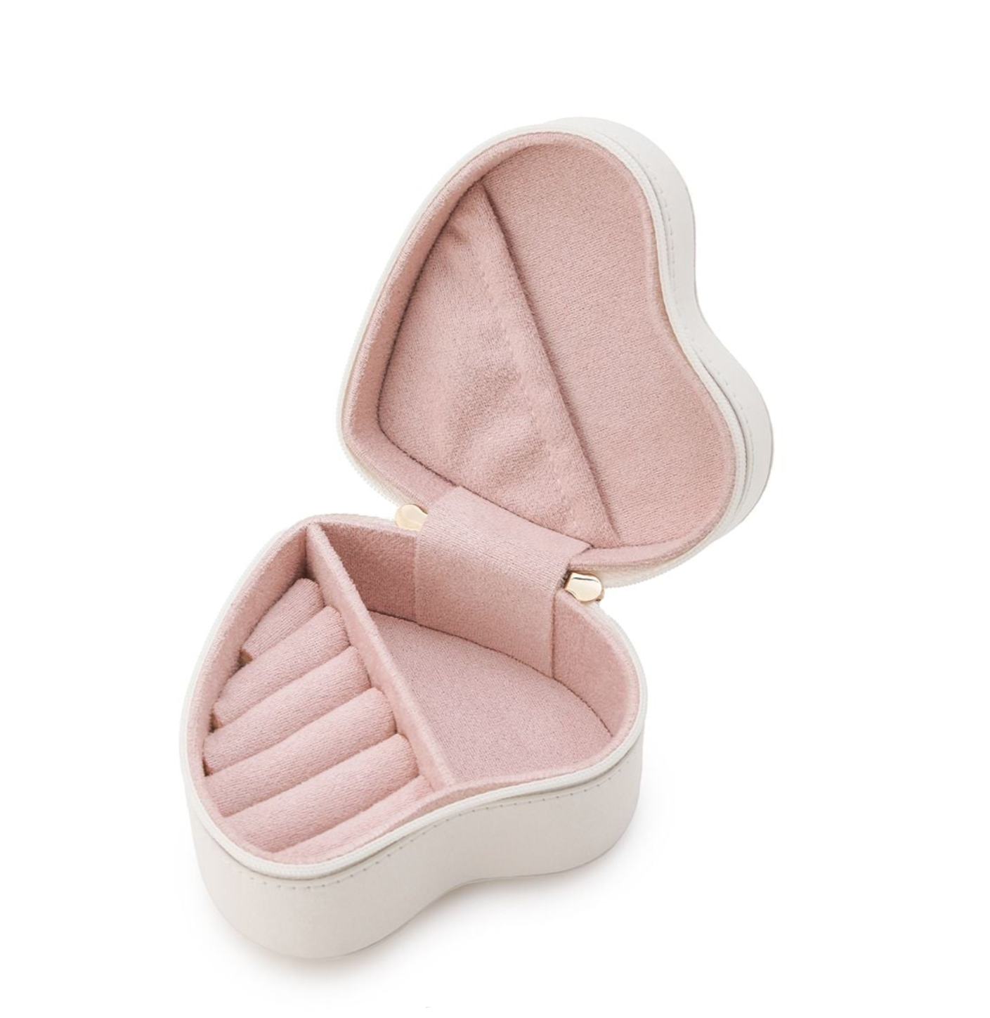 中はリングが収納できるクッションやスリットポケットなどいくつかの収納に分かれているので、旅行で複数のアクセサリーを持ち歩きたいときにもぴったりです。色は清潔感のあるオフホワイトと、大人可愛いピンクの2色を揃えました。