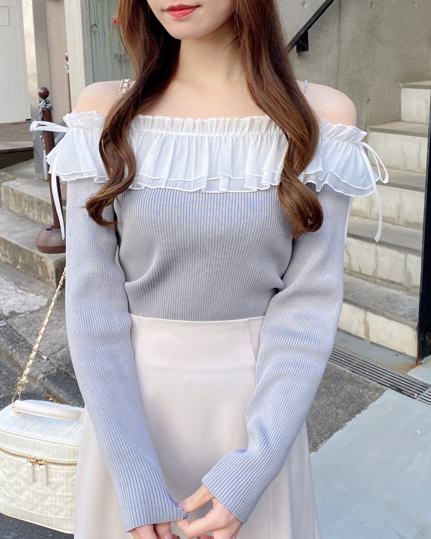 コンパクトなニット部分とボリューミーなフリルの組み合わせがメリハリのあるシルエットを演出してくれます🎀⭐️