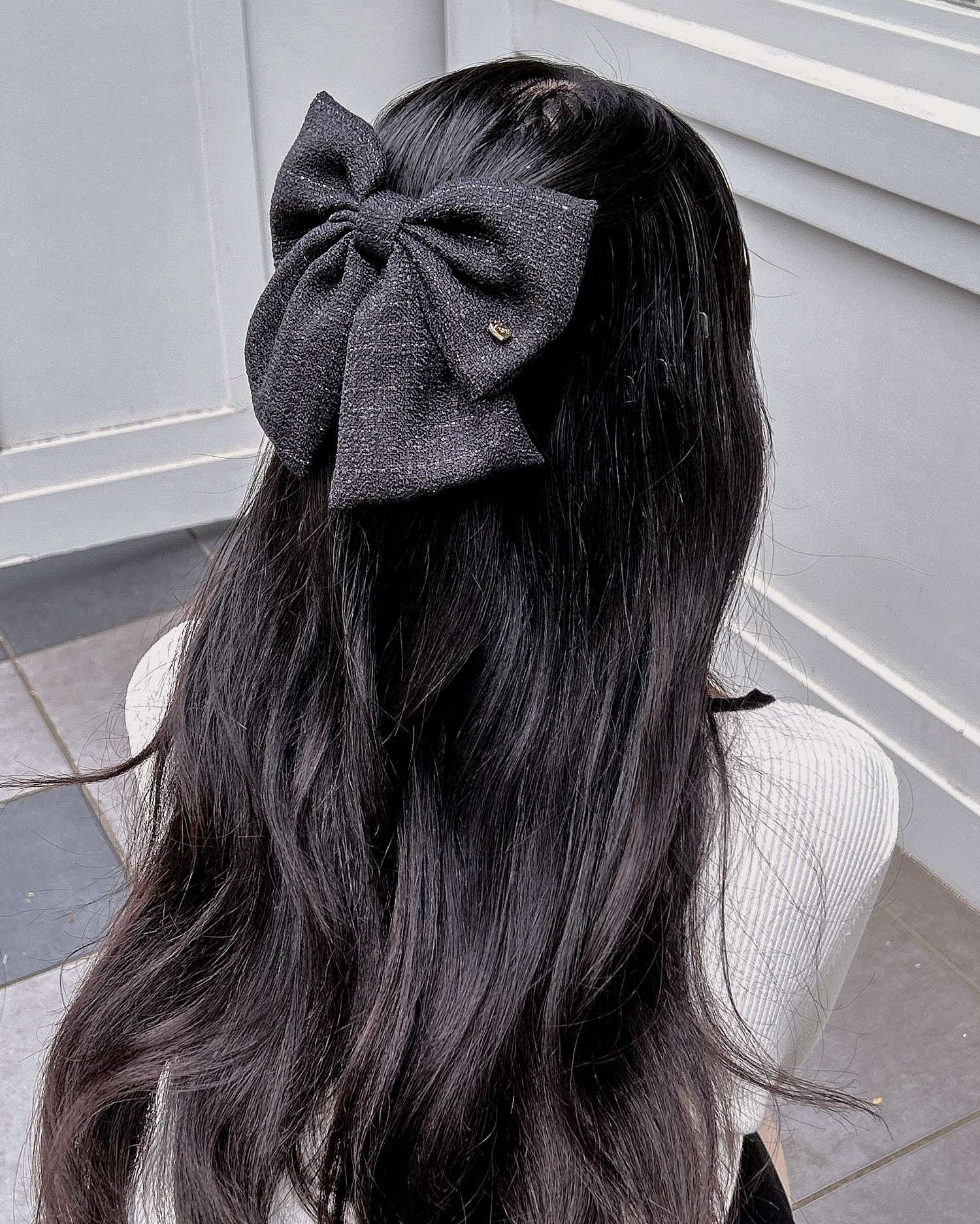 キラキラのラメを織り込んだツイード素材のリボンバレッタ🎀