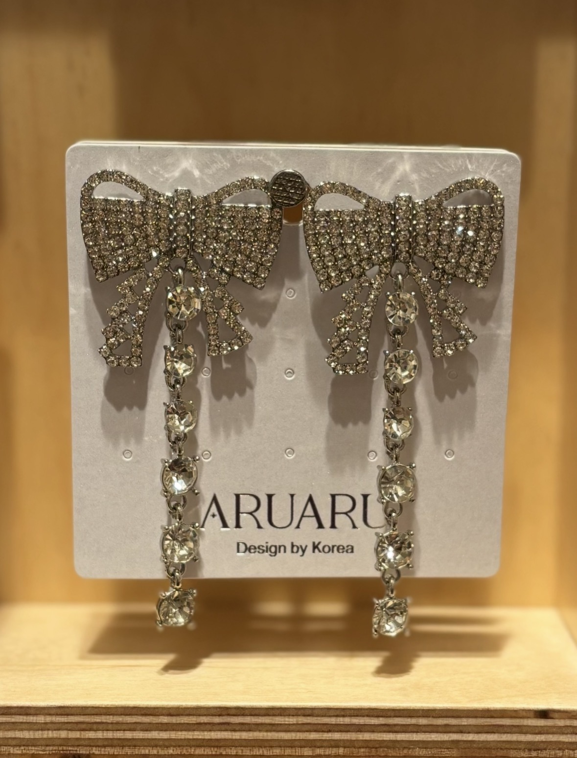 きらめくビジューを贅沢にあしらった、華やかなリボンモチーフピアス🎀💎