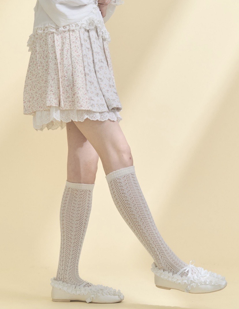 ベルト下にはフリルテープを挟み込み、裾にはレースをレイヤードしてさりげなくデコラティブな印象に仕上げました。