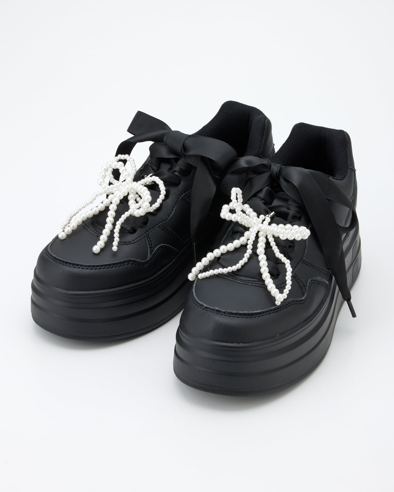 通常のシューレースの他にリボンとパールビジューがついております🍀*゜