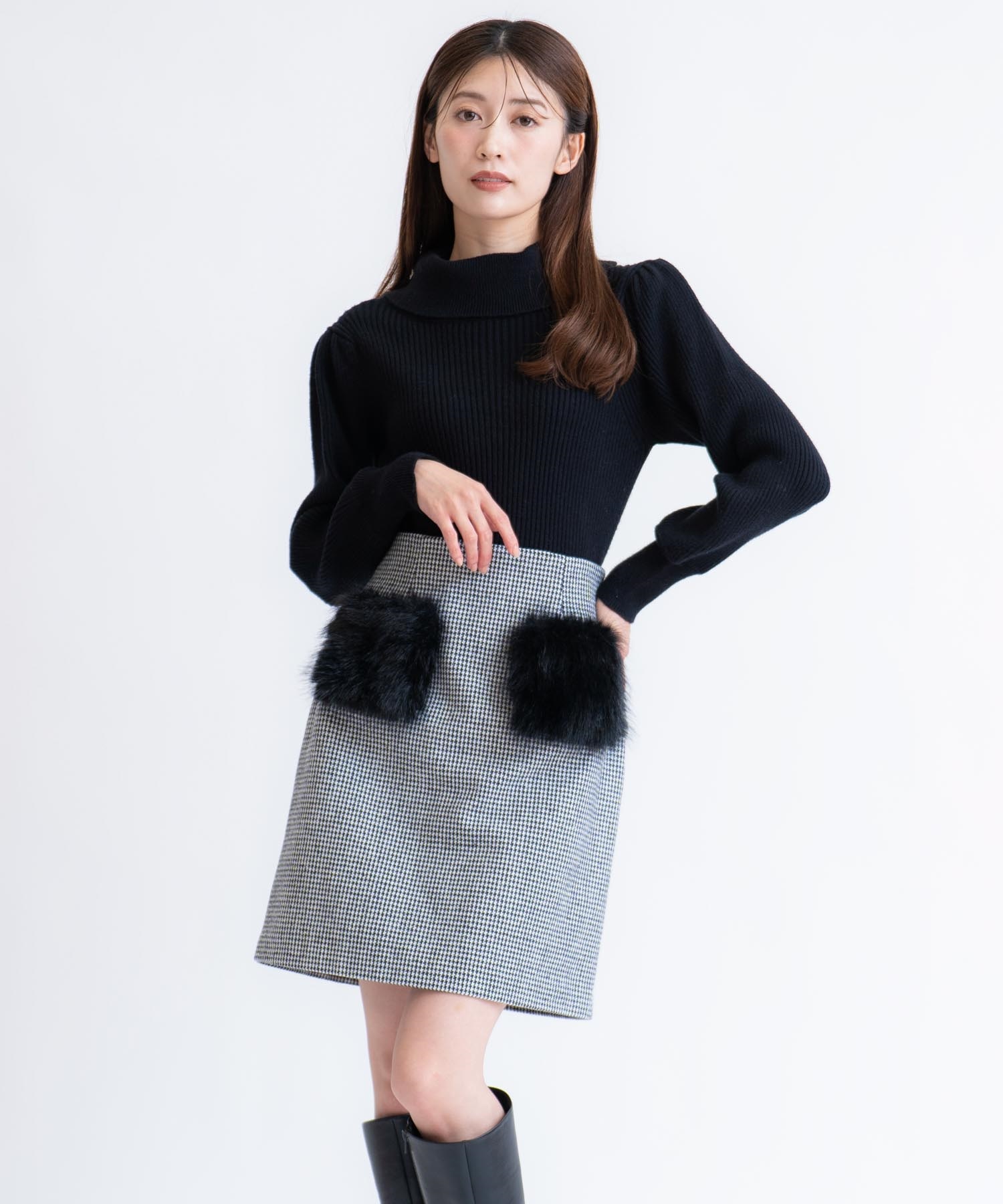 ショートブーツやタイツと合わせて冬のスタイリングを楽めます。