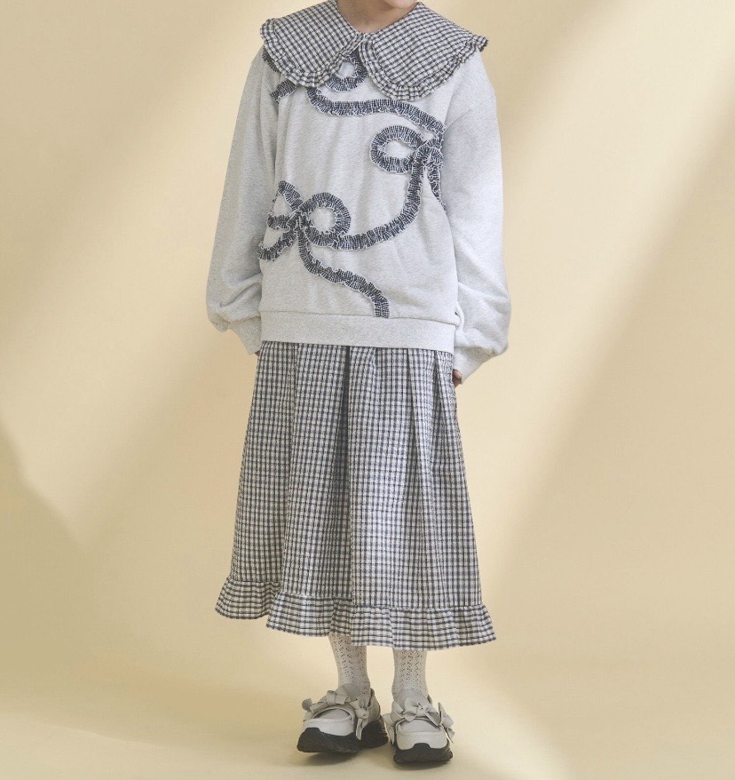 存在感たっぷりのギンガムチェックのリボンを立体的にあしらった一枚。