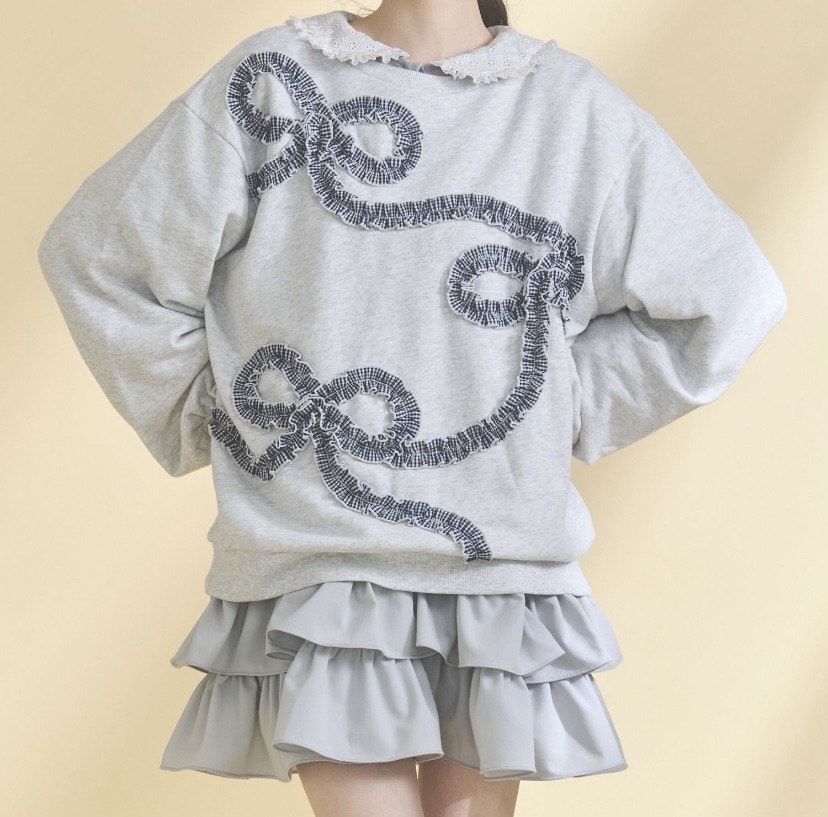 手描きのようなくるくるとしたリボンモチーフが、ガーリーで遊び心たっぷりな印象を与えてくれます。