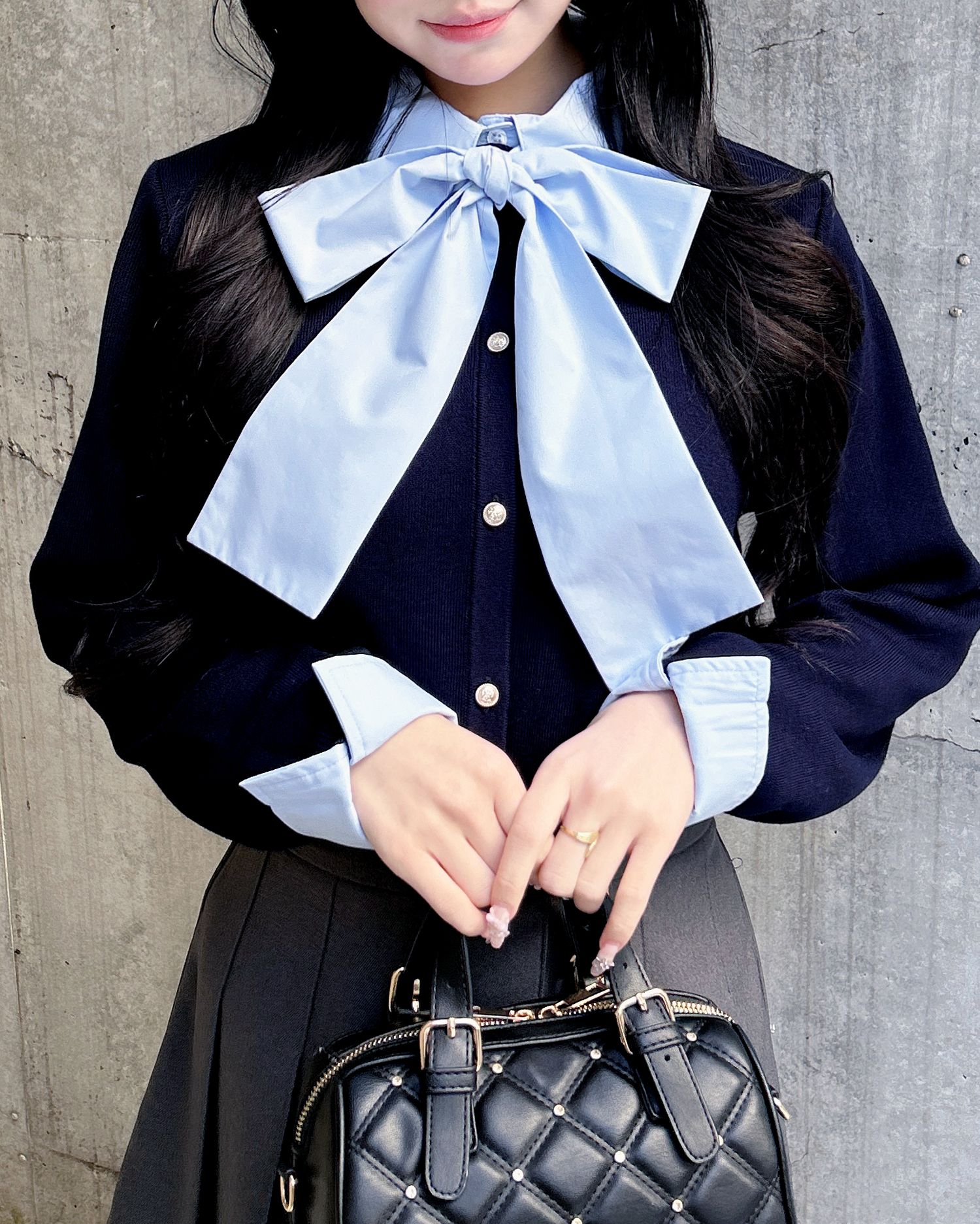 ボウタイだけを外したり、襟ごと外してクルーネックのカーディガンとしても着用可能となっております🎀