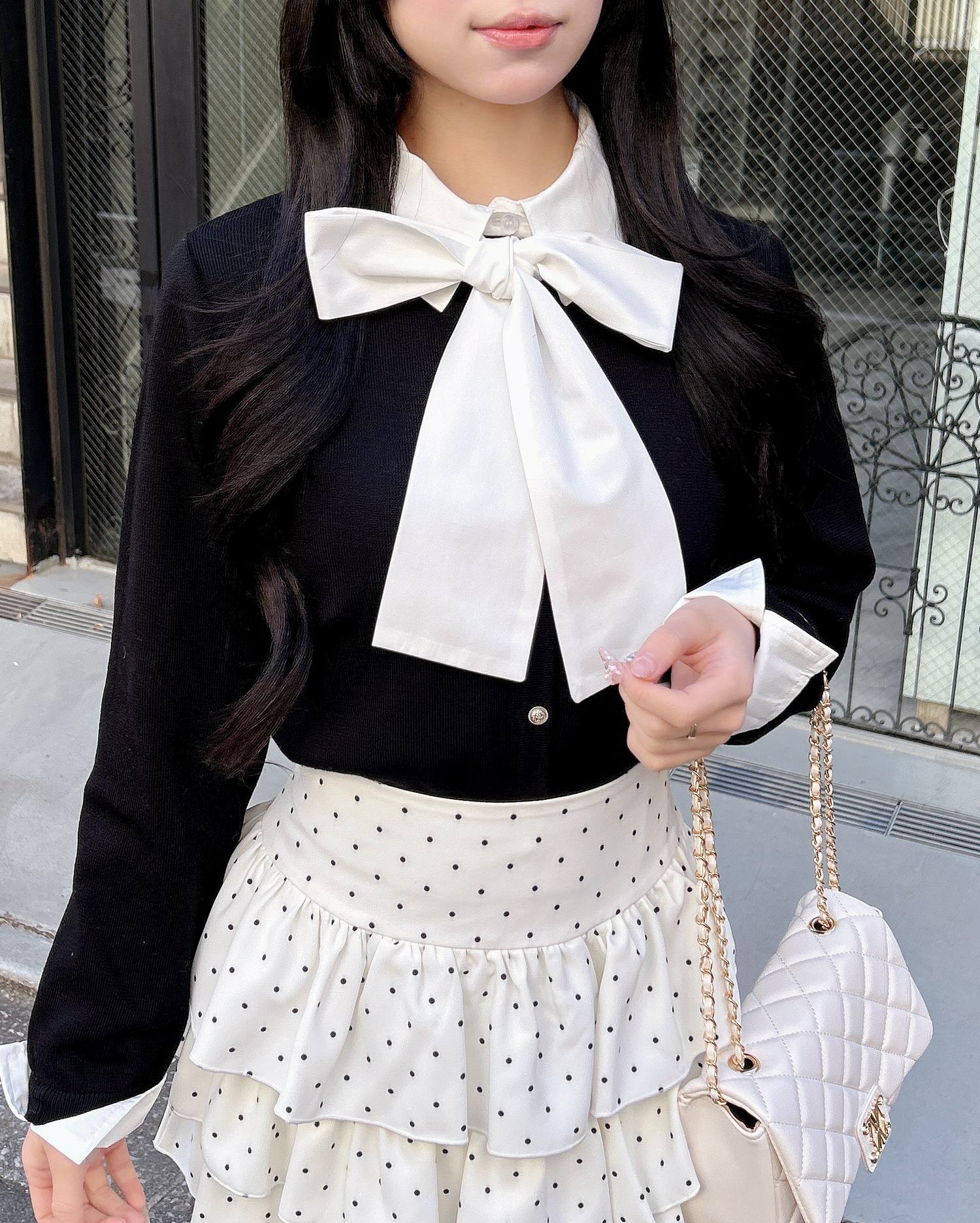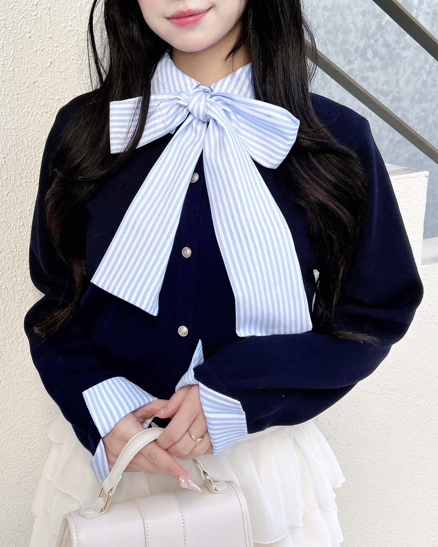 大きなリボンがかわいい♡シャツドッキングニットが登場❣️