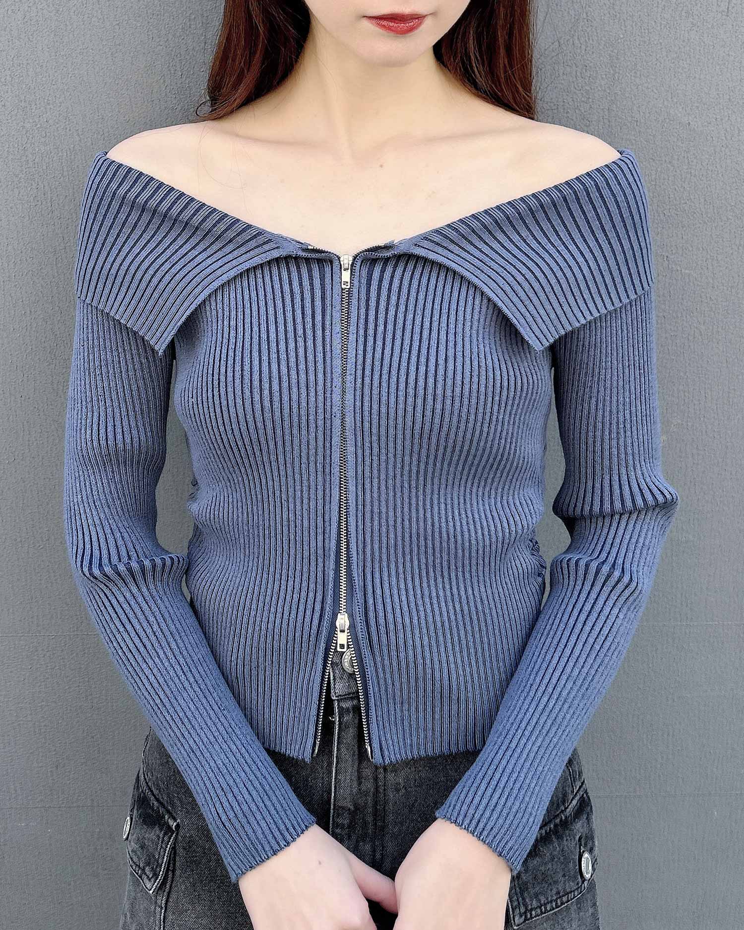⚫︎1261-600071 襟付オフショルニットカーディガン