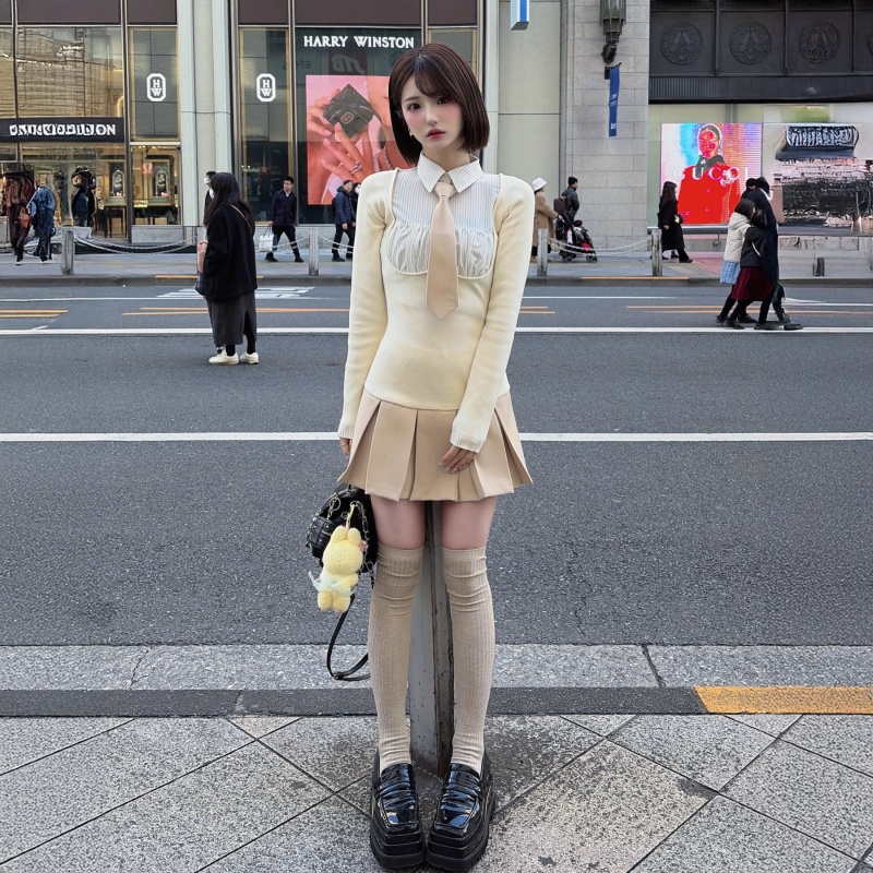 ニット×シャツ×プリーツの異素材ドッキングで、1枚でレイヤード風の奥行きコーデが完成する“優勝”ワンピースが新カラーで再登場♡✨