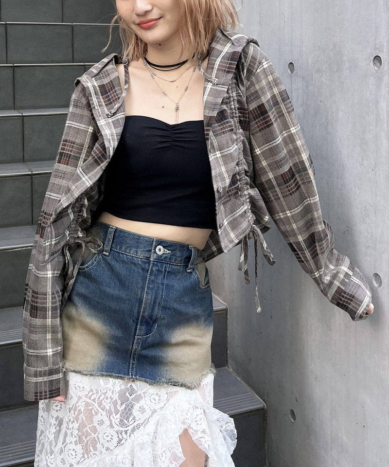 シャツ羽織りとしてカジュアルに、ショートトップスとしてレイヤードコーデに、