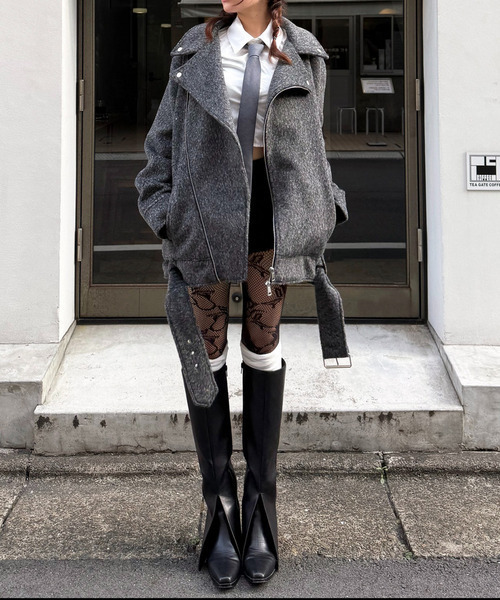 ほどよいルーズ感がこなれた印象を演出するビッグシルエットのライダース。