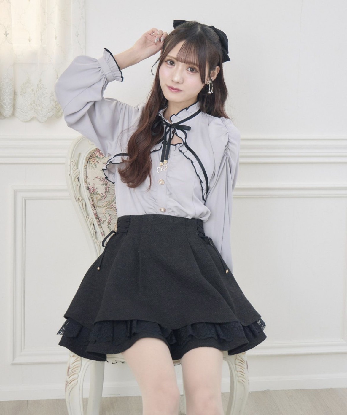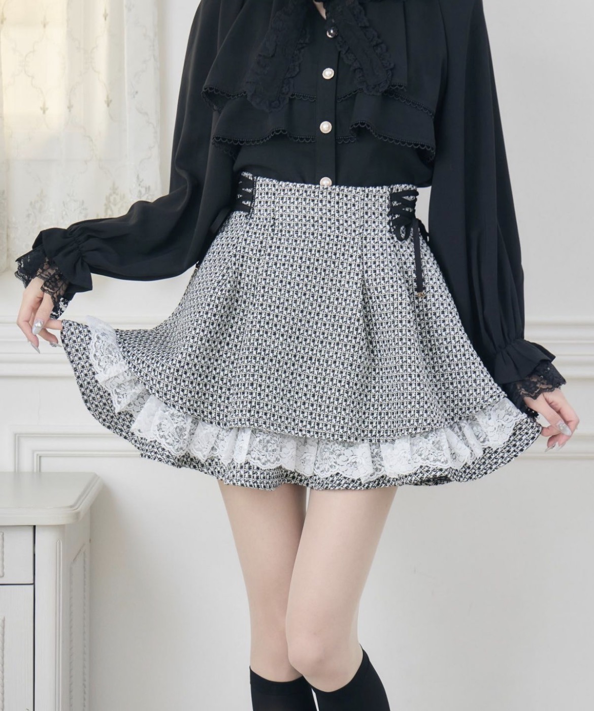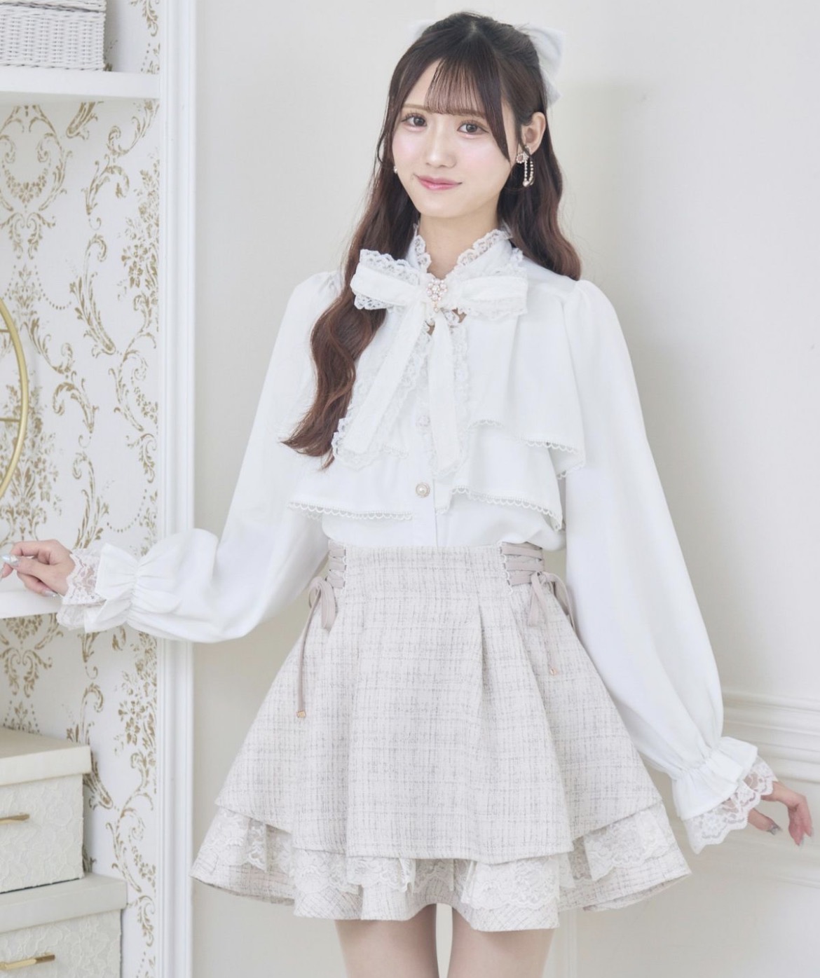 ふんわり広がるAラインシルエットが魅力のツイードスカパン♡サイドのレースアップリボンでウエストをマークでき、メリハリのあるラインを演出します。定番デザインをアップデートし、セットアップ対応のジャケットと合わせれば、よりきちんと感のある着こなしに◎