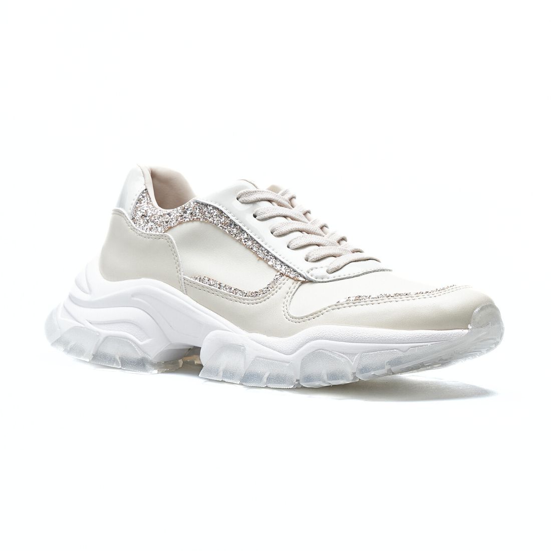 スニーカーの手軽さに甘えても、女性らしさが出せる煌びやかなグリッターだから、自分の着たいスタイリングで遠慮なくおめかしを楽しんで。💫☁️