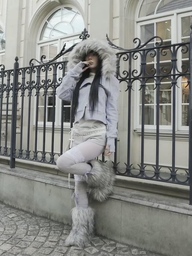 フード部分のファーは取り外し可能で、気分やスタイリングに合わせて変えられます。