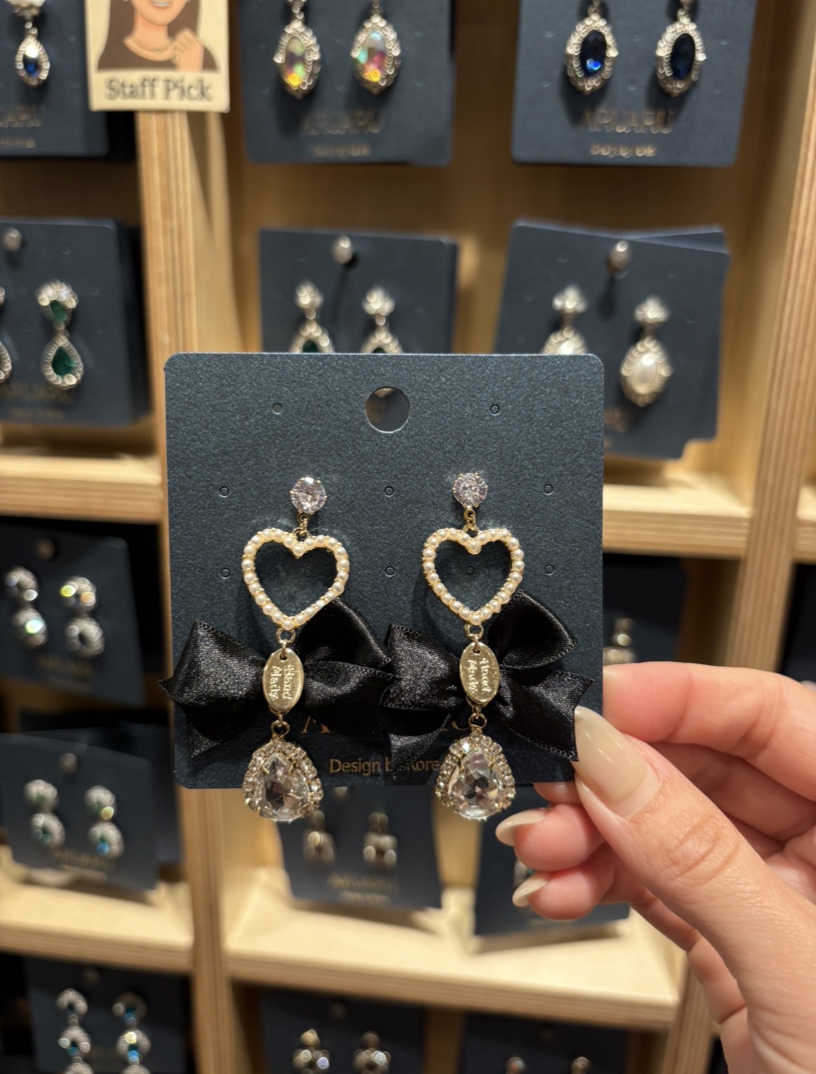 パールハートとリボンモチーフを組み合わせた、華やかで可愛らしいピアス🎀