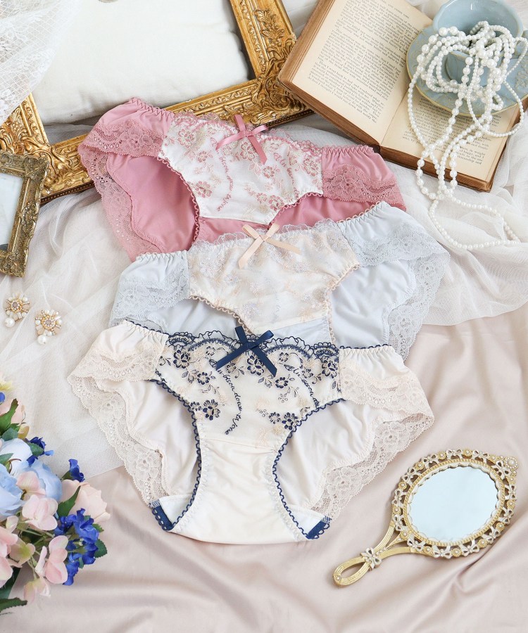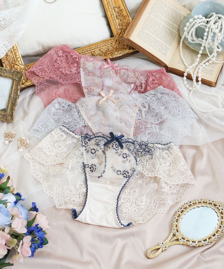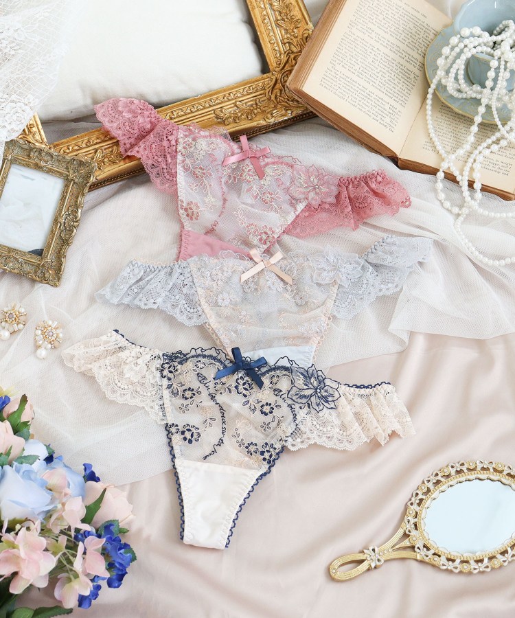 後身生地は総レースになっており、伸縮性のあるレースが肌に心地よくフィットします。足口にはゴムを使っていないので食い込まず、少しゆとりをもった履き心地です。ボトムスへもショーツラインが響きません。通気性がよく、快適にご着用いただけます。甘すぎず、大胆過ぎない特別感あふれるデザインが、ラグジュアリーな大人の雰囲気を演出します。