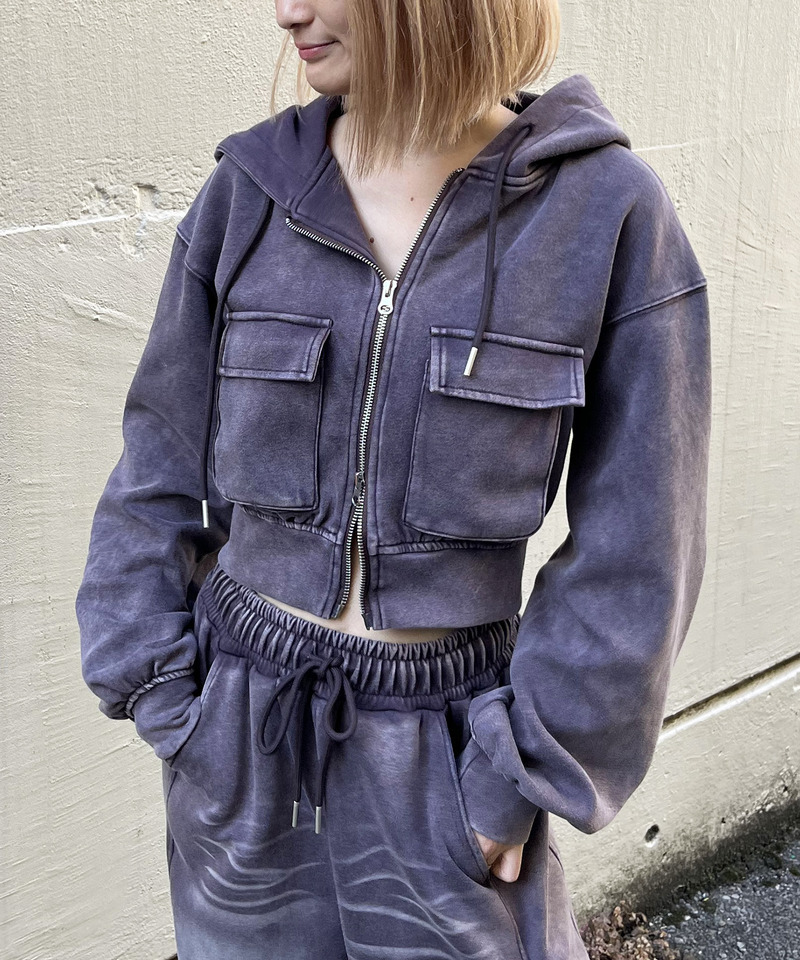 フロストバイオ加工でヴィンテージライクな風合いに仕上げたショートパーカー。