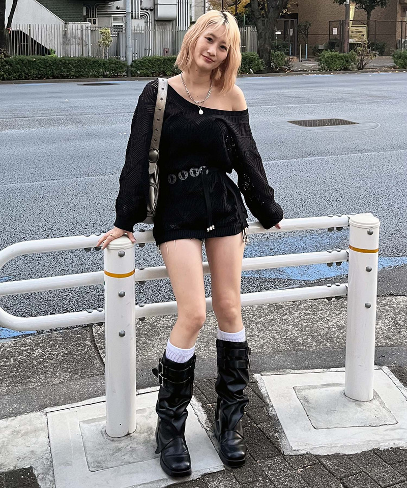 透かし編みの程よい肌見せがこなれ感を演出して、