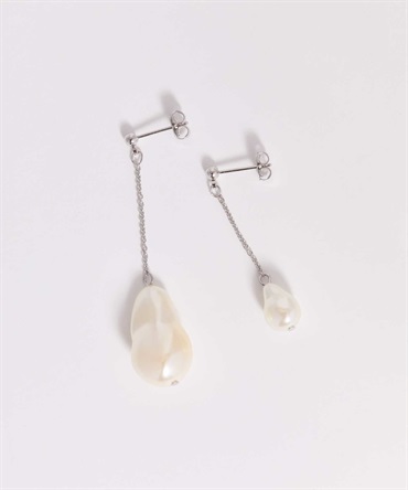 異なるサイズのバロックパールをアシンメトリーにあしらった、表情豊かなロングチェーンピアス。