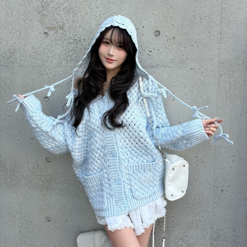 程よくゆとりのあるシルエットとざっくりとしたバスケット編みが魅力の、リラックスムード漂うニットカーディガン🧺