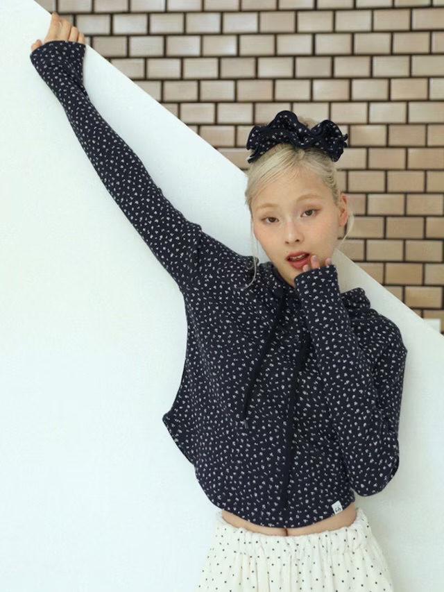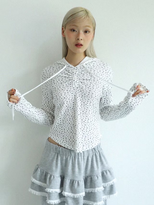 繊細な小花柄が目を惹くフーディートップス。