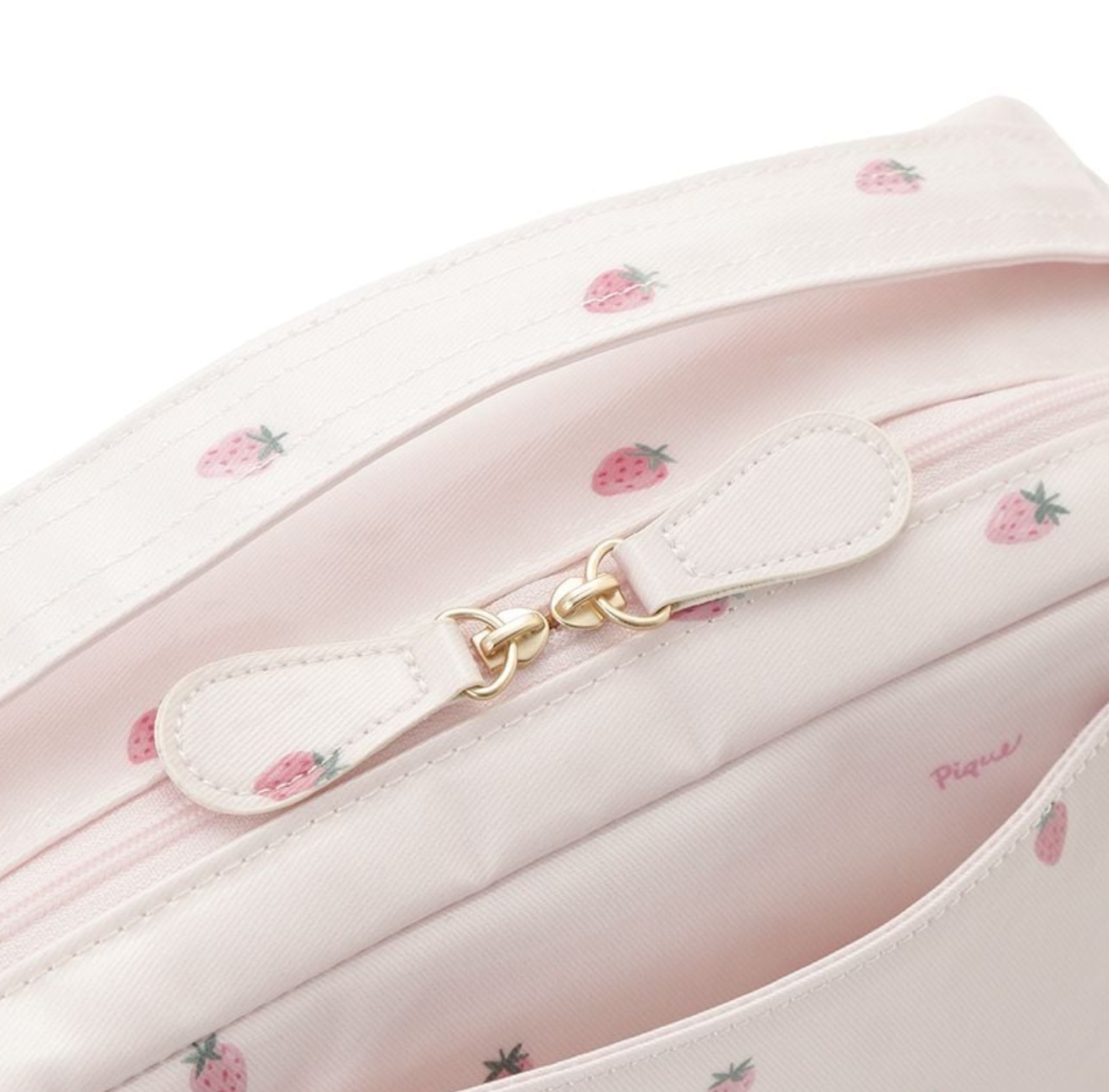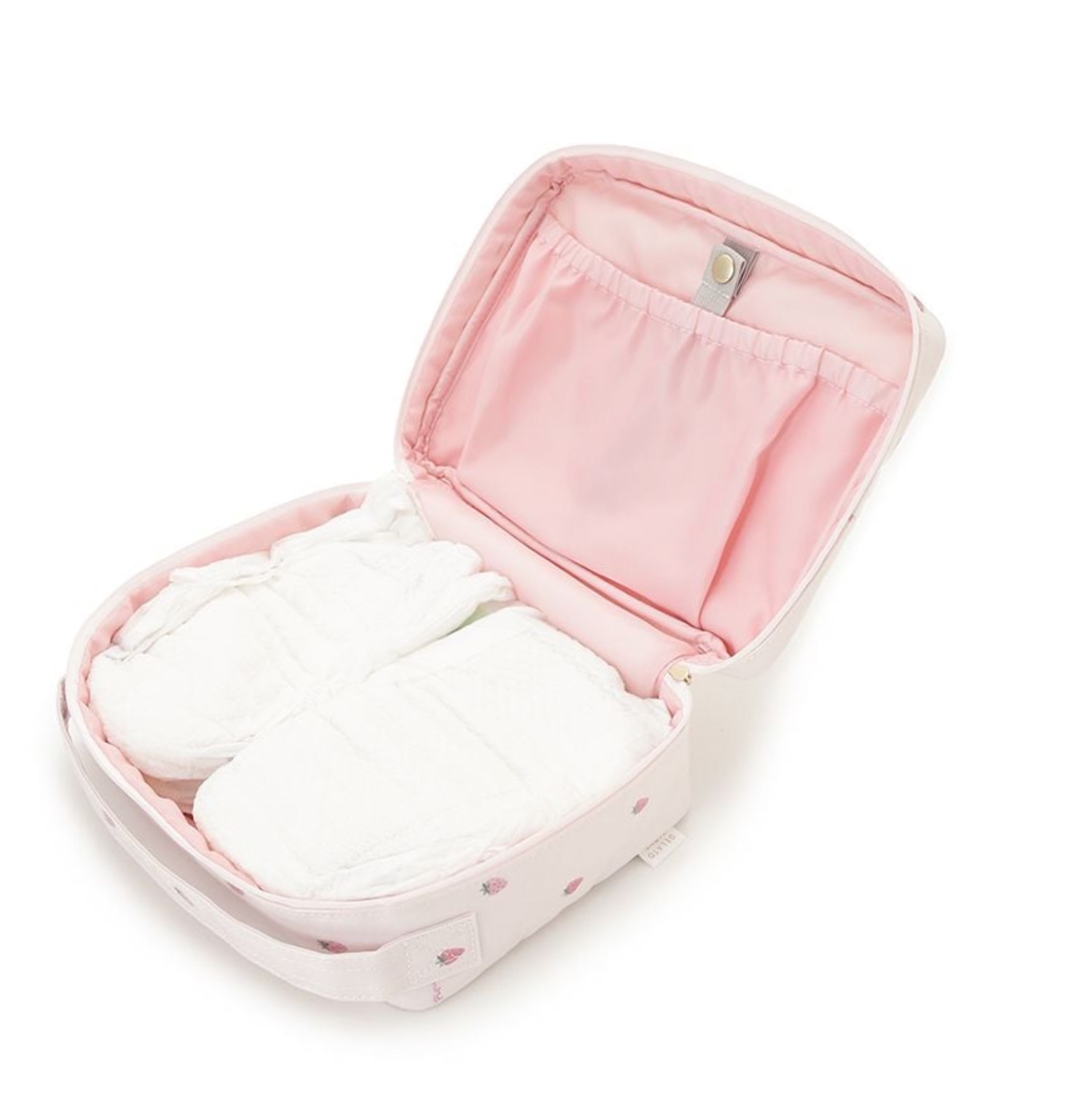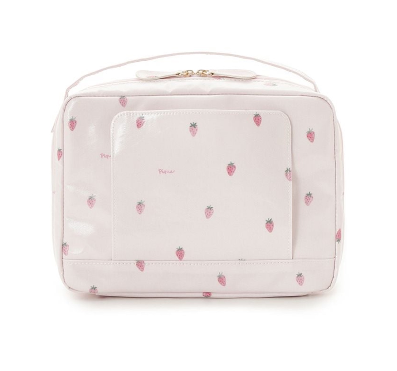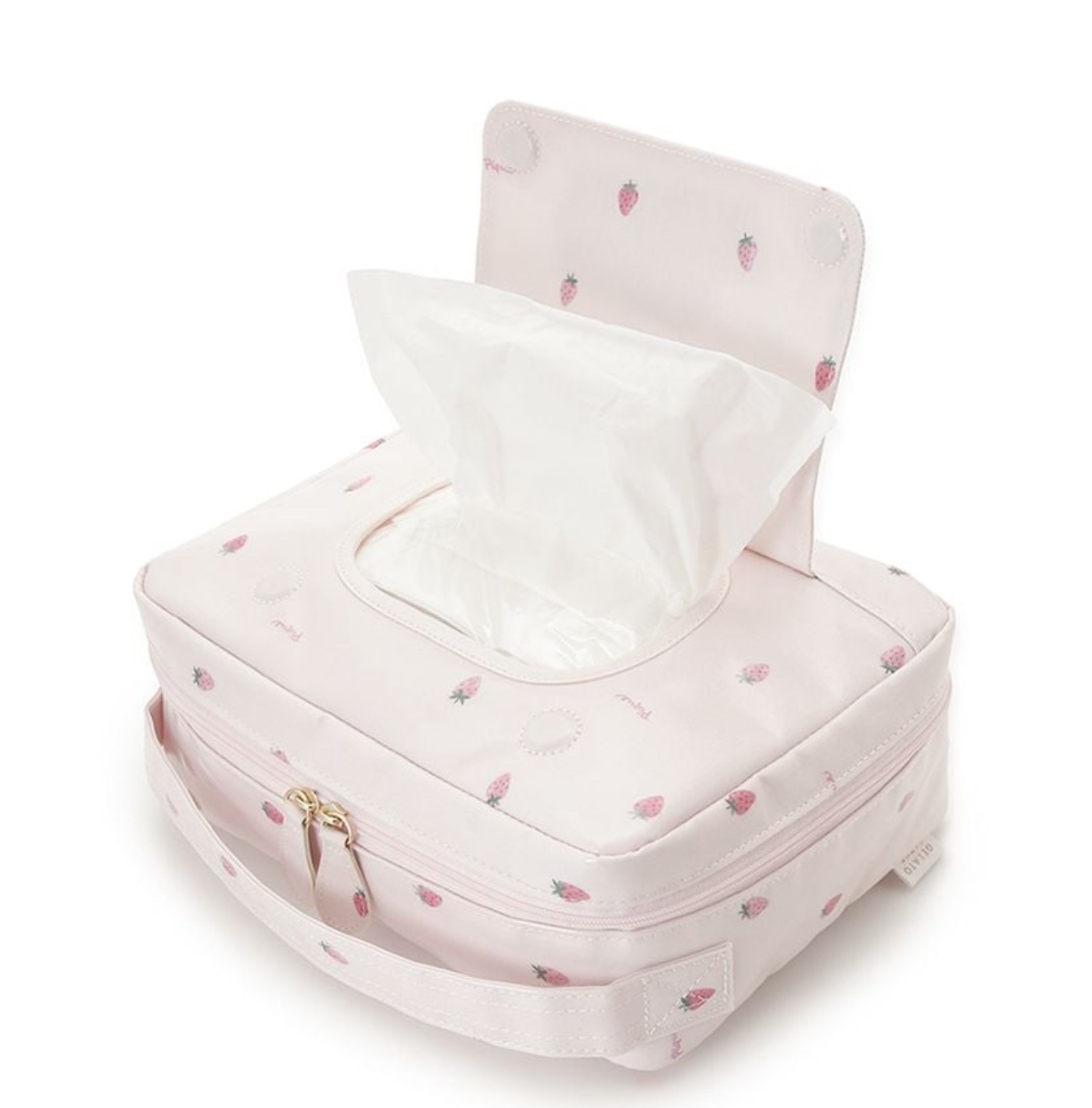 小さなストロベリー柄を散りばめた春らしいおむつポーチです🌸🍃