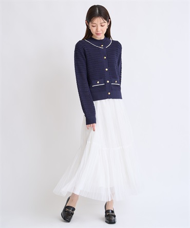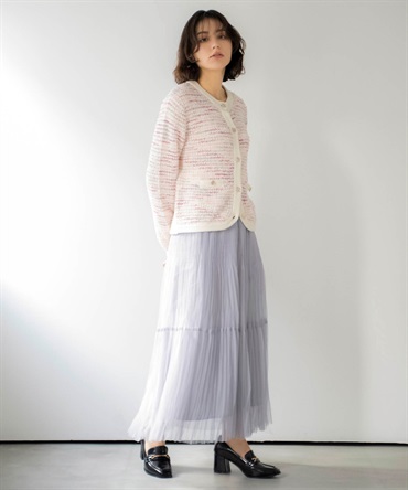 ホワイトはフェミニン、グレーは大人っぽく、Tシャツやニット、ブラウスとも好相性の1枚です。