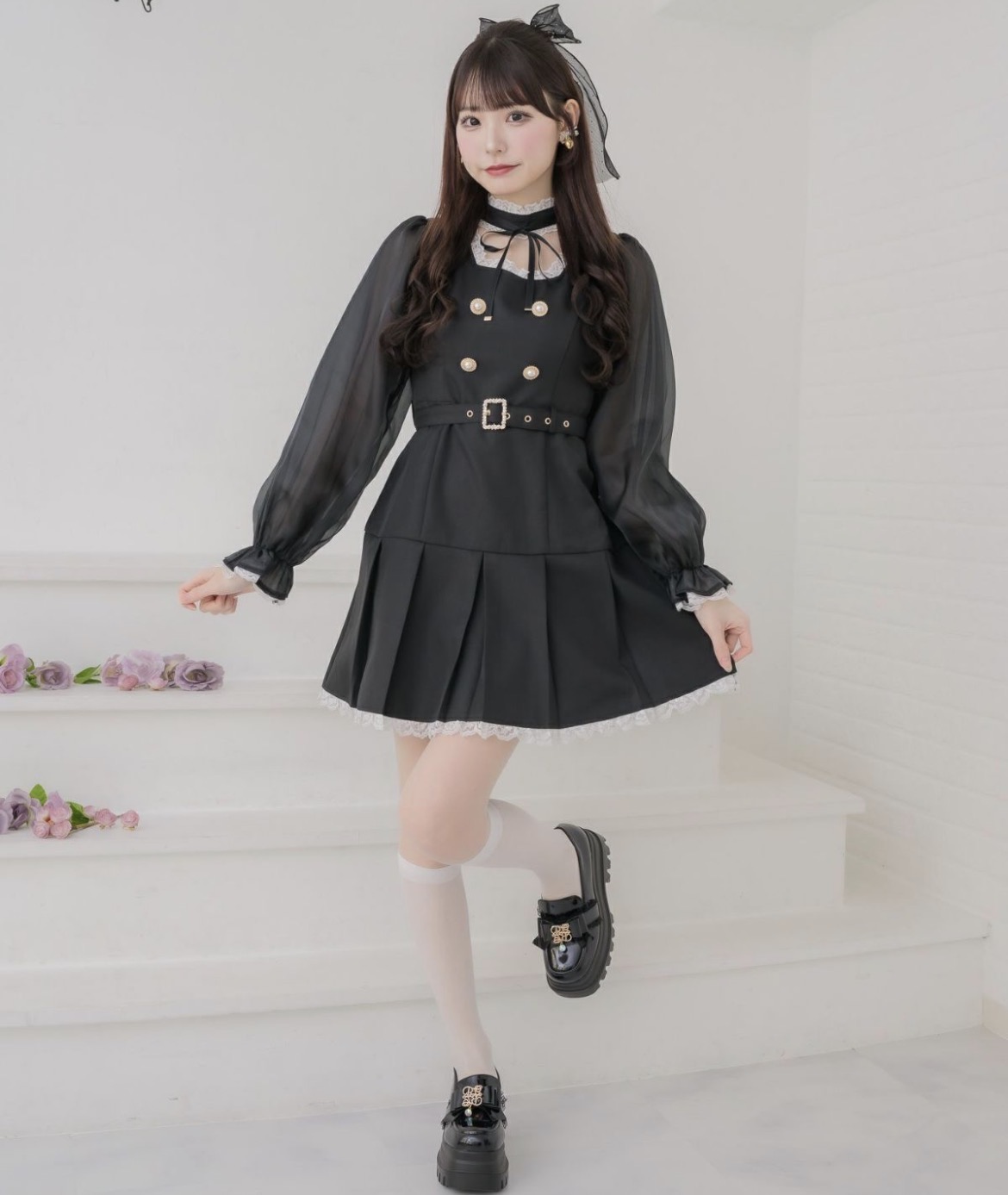 上品さとクラシカルな雰囲気を兼ね備えたワンピース。透け感のあるシアースリーブで軽やかさをプラスし、全体的にお育ちの良さそうな上品な印象に♪ウエストベルトでメリハリのあるシルエットに仕上げ、腰の切り替えプリーツがデザインに立体感と奥行きを添えます。