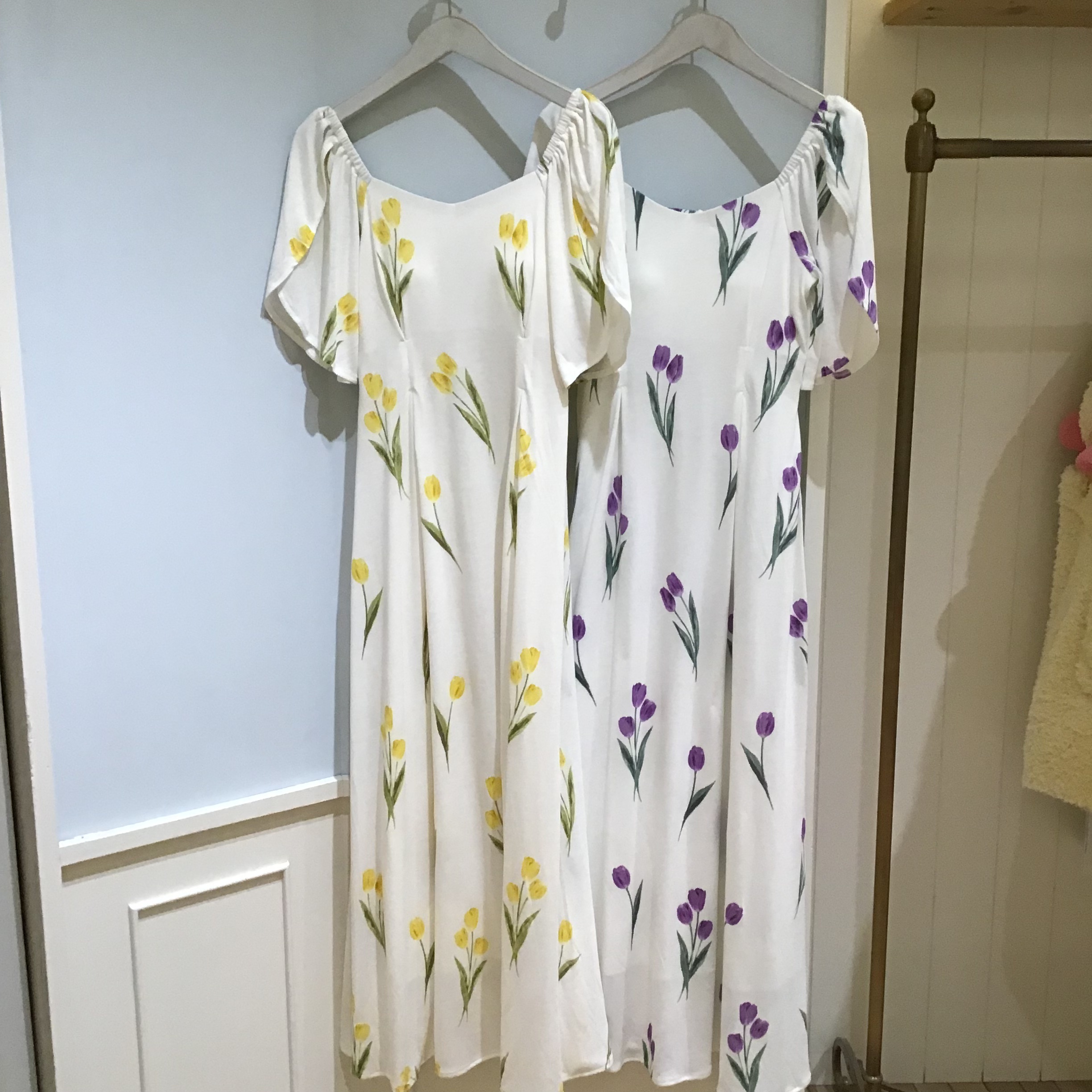 色とりどりのチューリップが春の到来を告げる、爽やかなガーデンのようなプリント柄シリーズです。薄手の涼しげなレーヨン混素材を使用した、するんととろけるような肌触りのカップインワンピース。