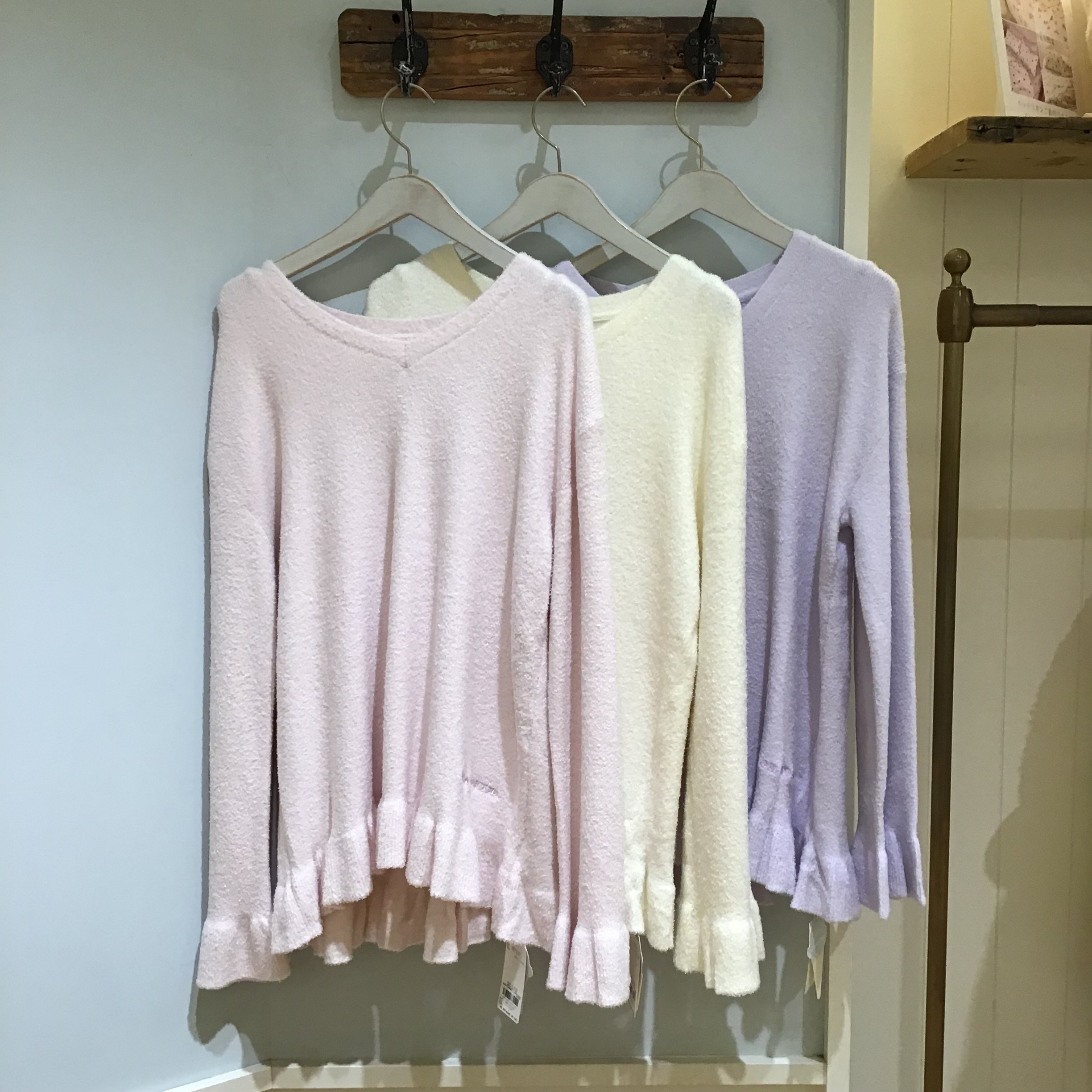 春に似合う柔らかな色合いの’スムーズィー’を使用した、フリル付きのニットシリーズです✨