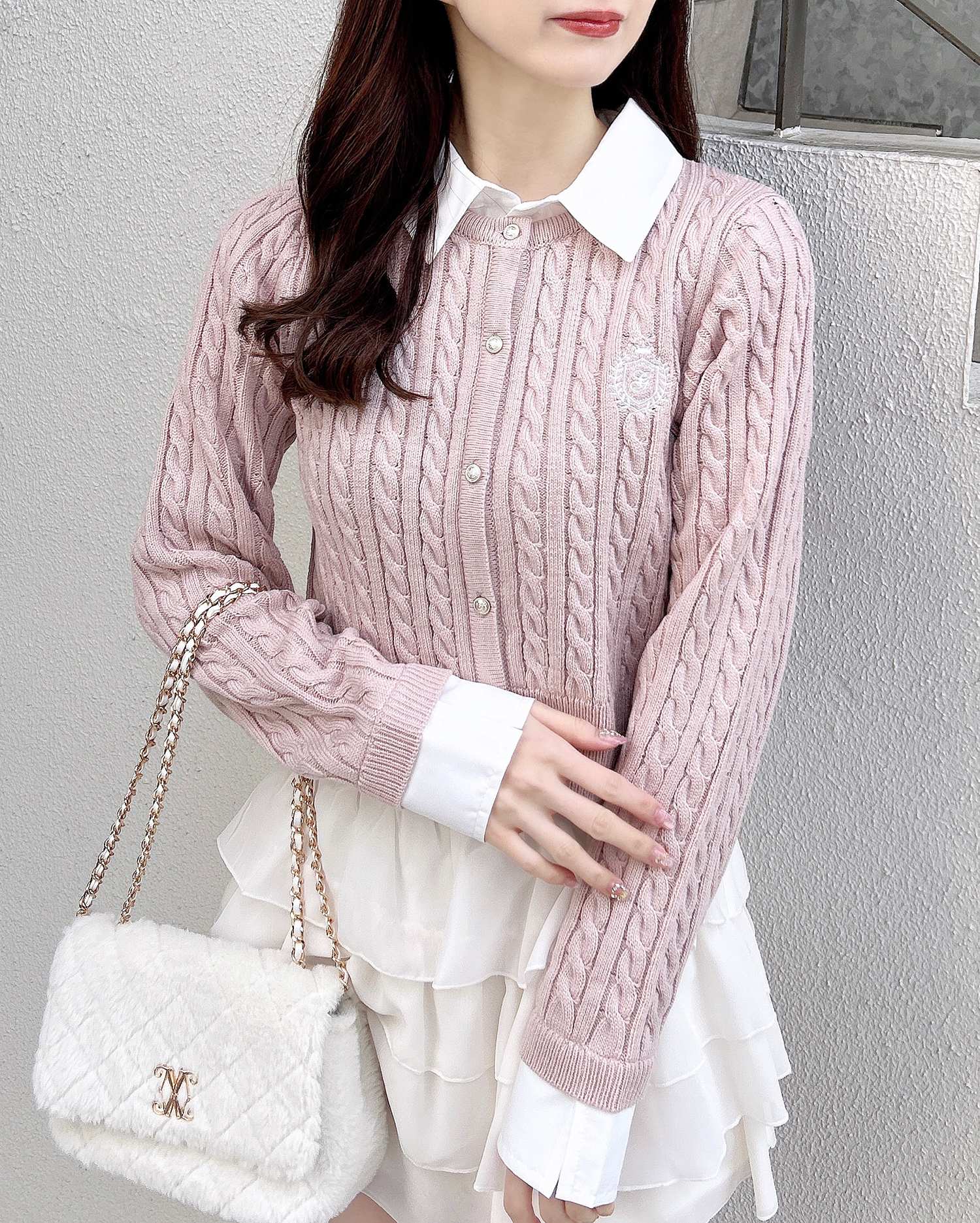 トレンドのシャツレイヤード風デザイン×ケーブル編みのニットが登場🧶