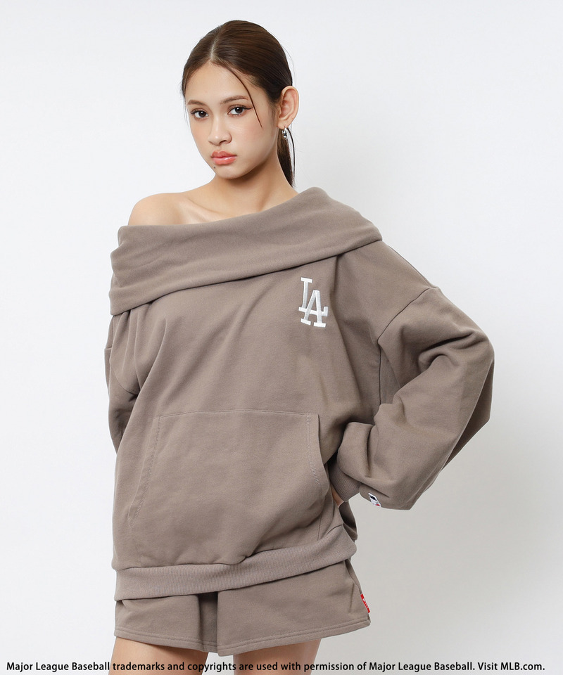 トップスは、たっぷりとしたボリューム感と、首元のたゆみが絶妙なフードデザインが特徴。フードをかぶるとモードな印象に、肩を落としてオフショルやワンショル風にもアレンジ可能で、気分やスタイリングに合わせたシルエットチェンジが叶います。