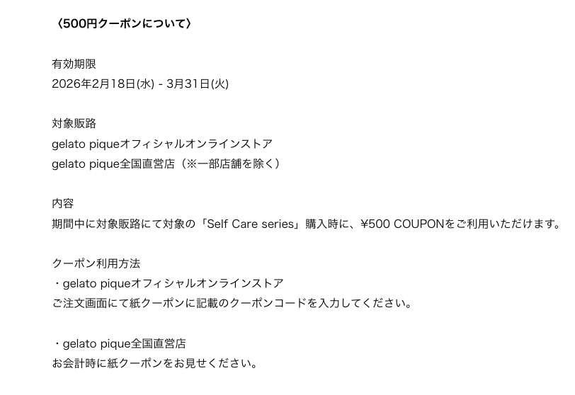・gelato piqueオフィシャルオンラインストアご利用時
