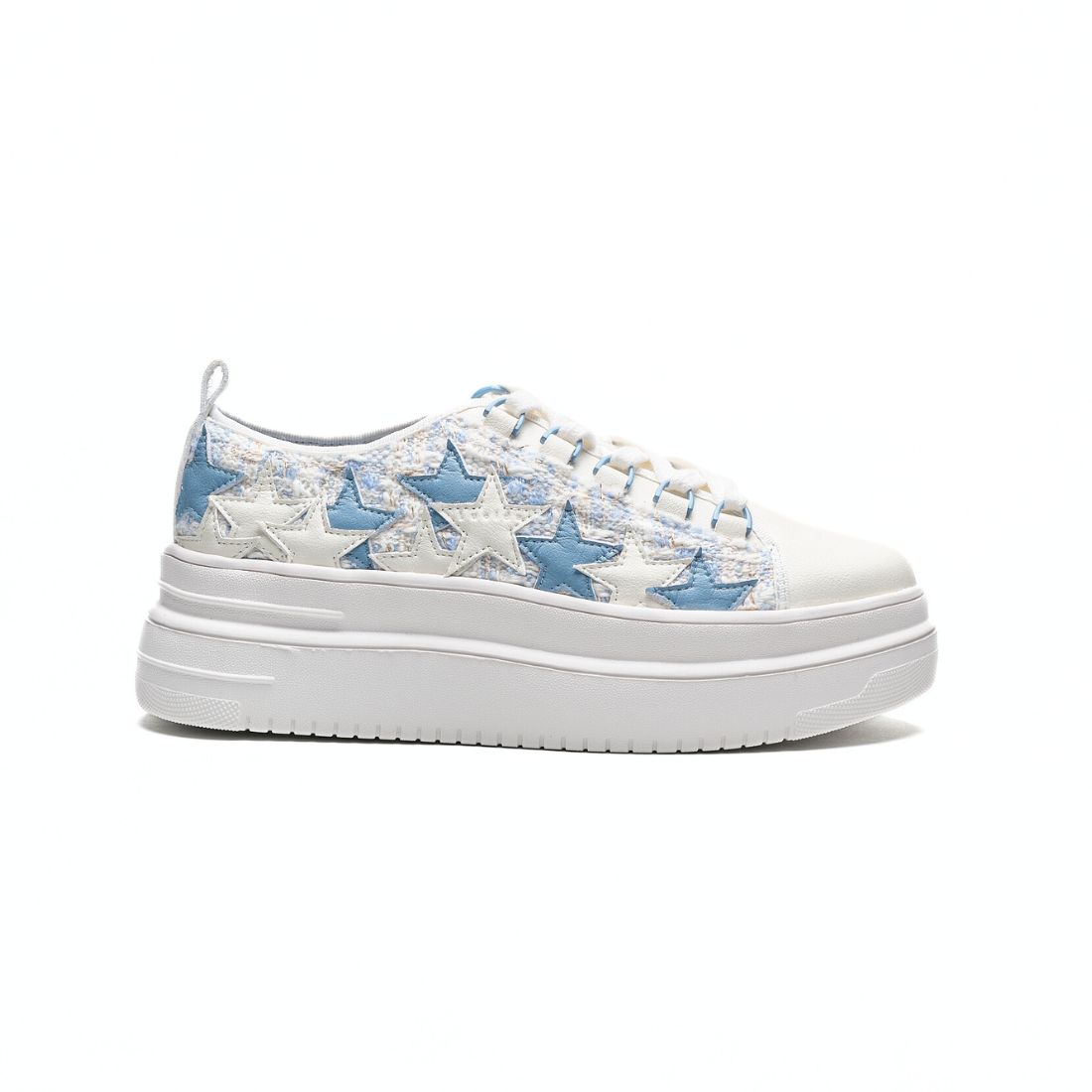 人気モデルから、さらに特別な1足となるツイードが数量限定で到着。スタイリッシュな星のデザインでも、女性らしく仕立てるツイードで愛嬌をプラス。大胆なデザインと洗練されたフォルムが融合した、個性派プラットフォームスニーカーです。