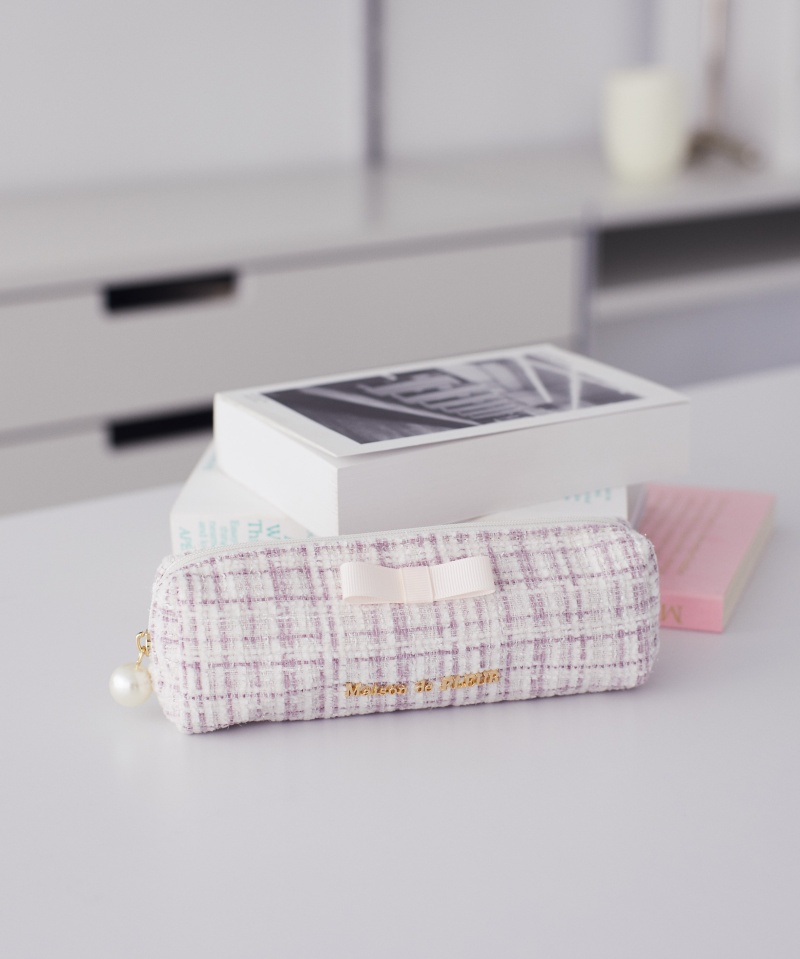 立体的なツイード素材に、ミニリボンをあしらったロングポーチ。