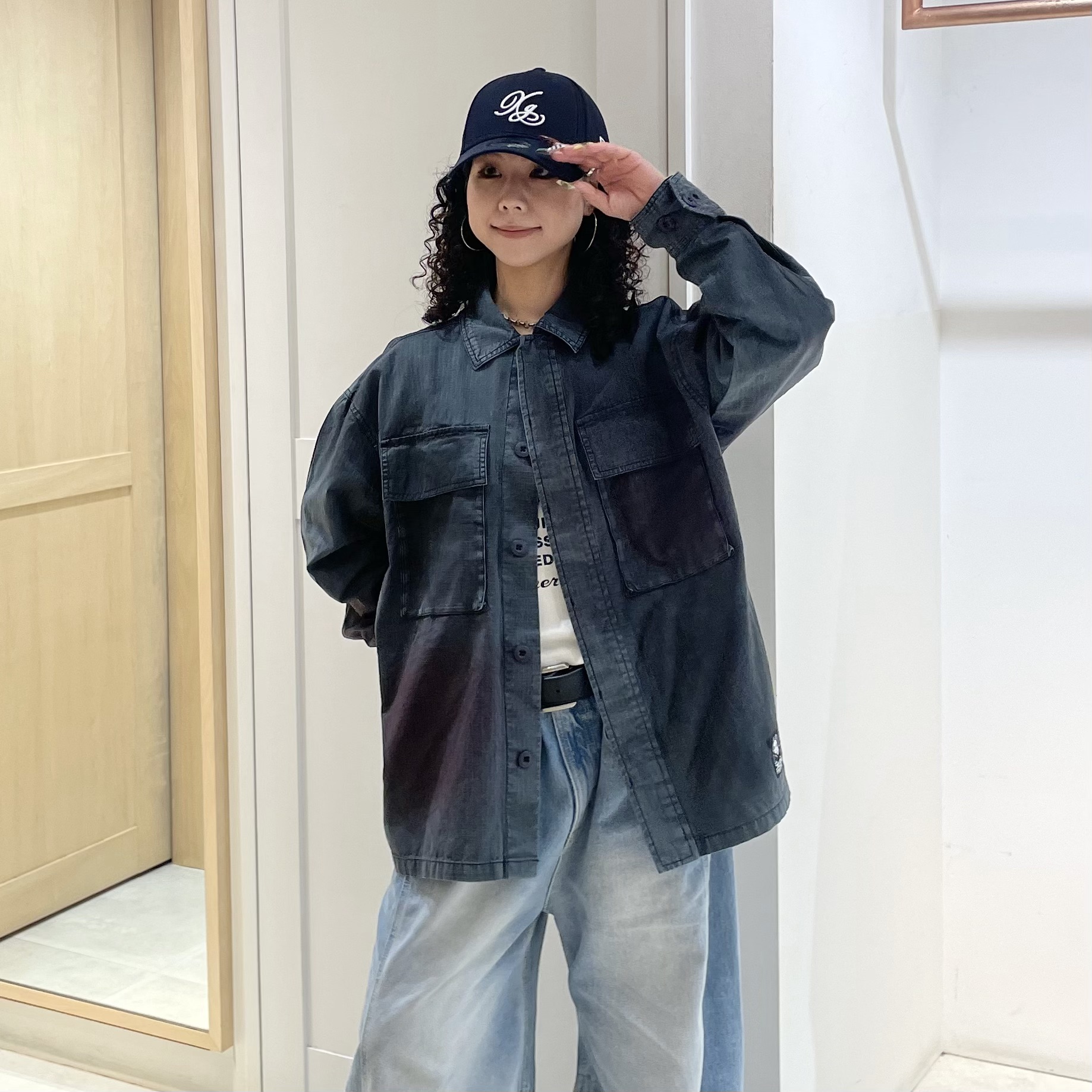 加工感が惹き立つ、ベーシックなミリタリーシャツ。 深みのある風合いの、大胆な加工感が魅力。 全面加工のため、どこから見ても1枚でサマになる主役級アイテムです。 ゆったり着用できるオーバーサイズで、ストリートライクな着こなしに。 裾には、FACEの織りネームを付け、細部までこだわりが詰まったデザインに。