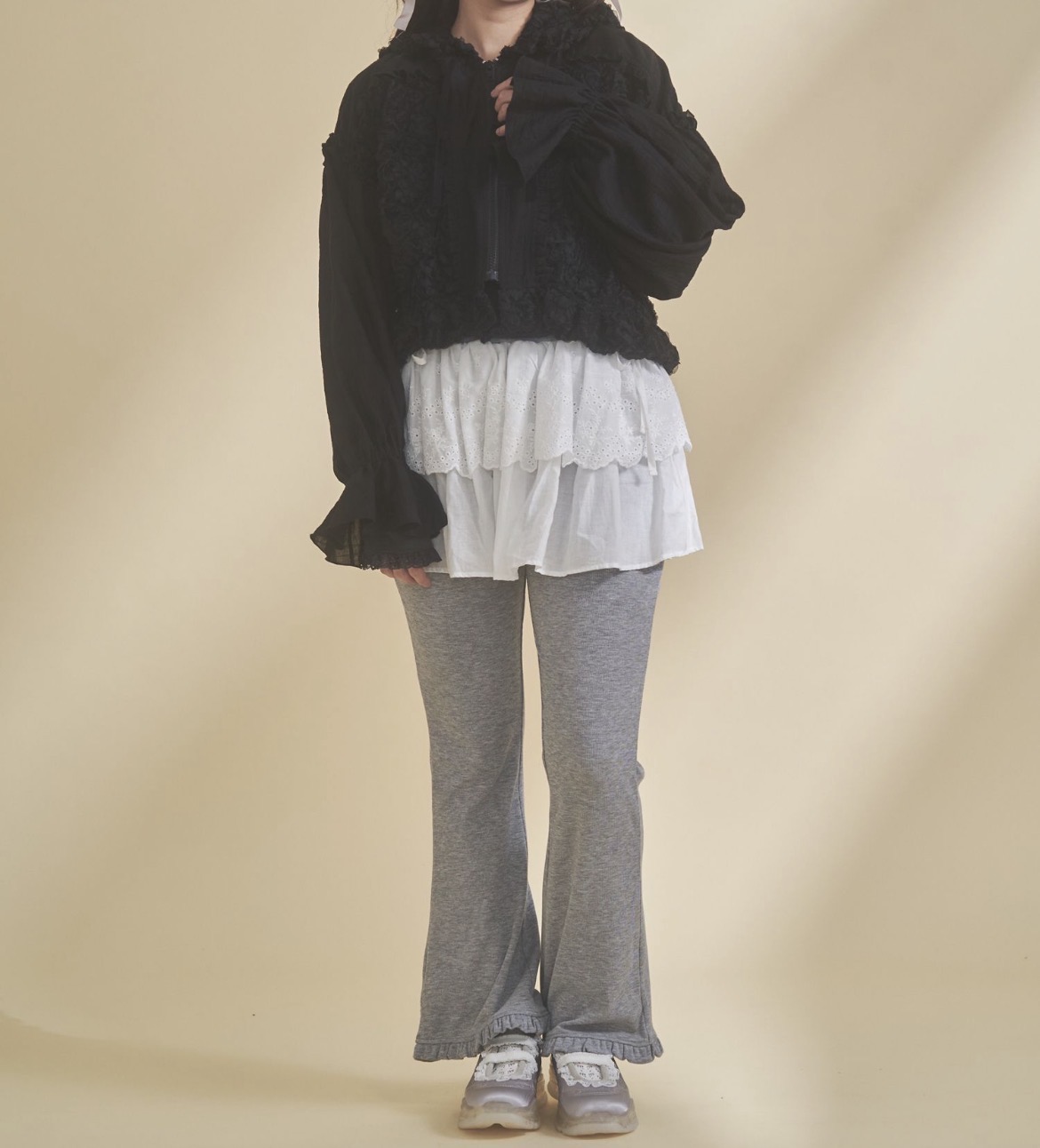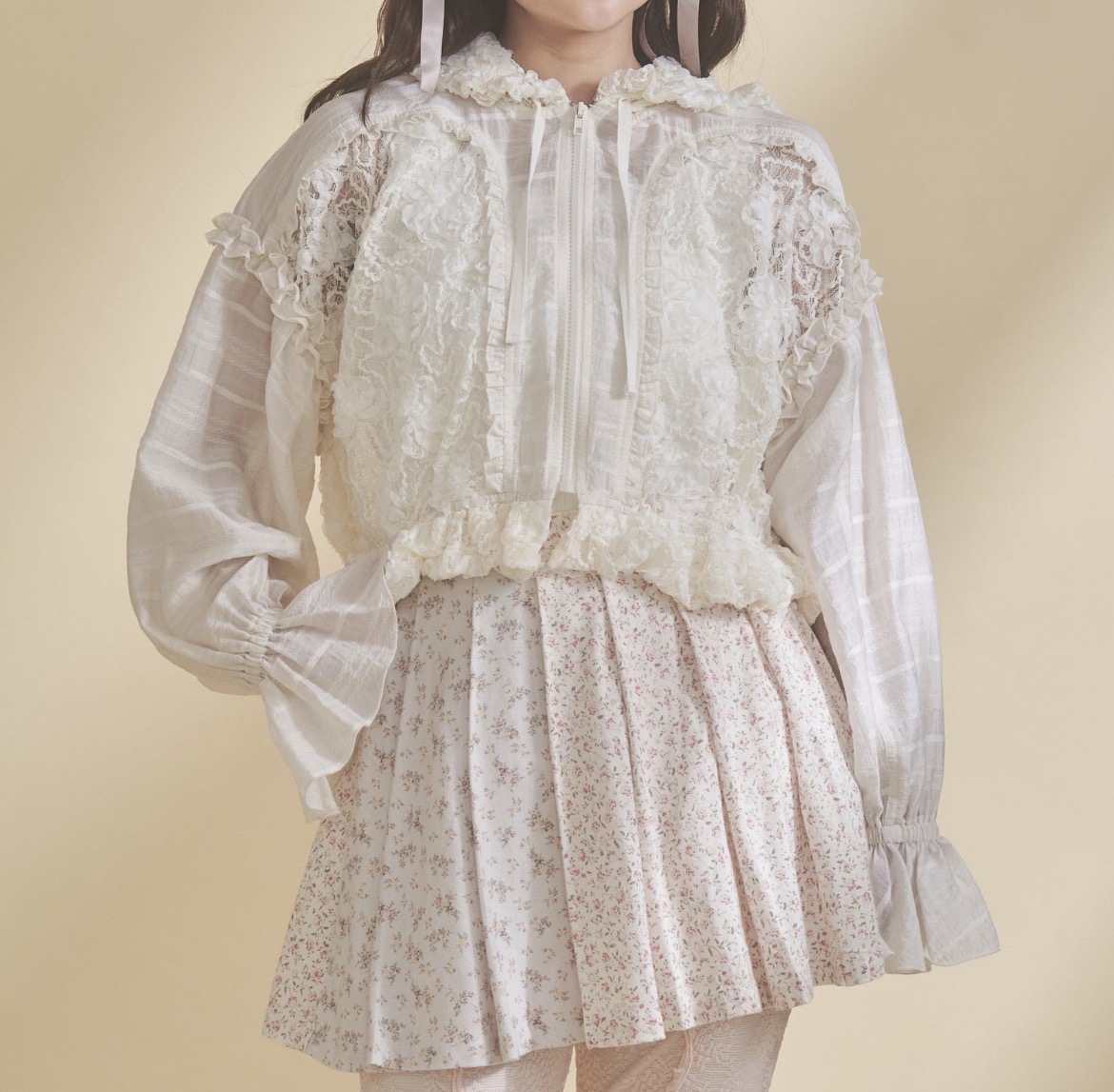 繊細なシアー素材と立体感のある生地を組み合わせた、レースフードブルゾン。