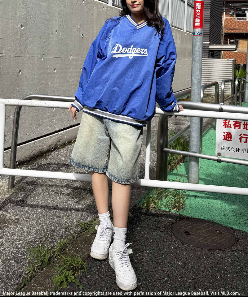 光沢感のあるナイロン素材に、MLBチームロゴの存在感が映えるスポーティトップス。
