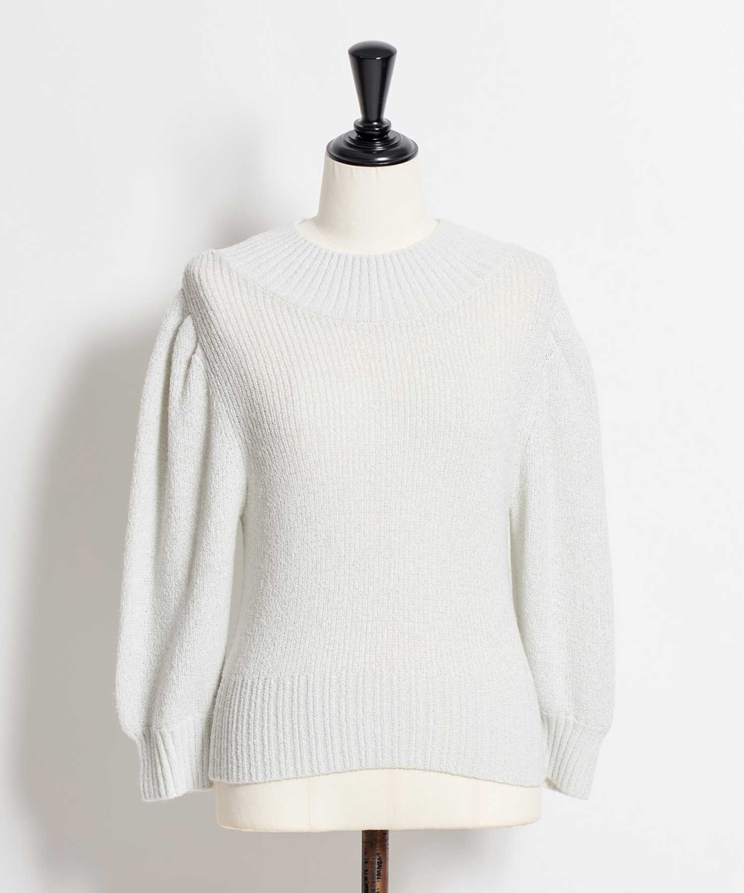 さりげないラメ感と優しい肌触りが魅力のパフスリーブニット。