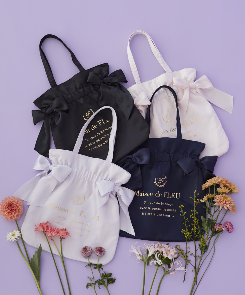人気のダブルリボンギャザートートバッグに