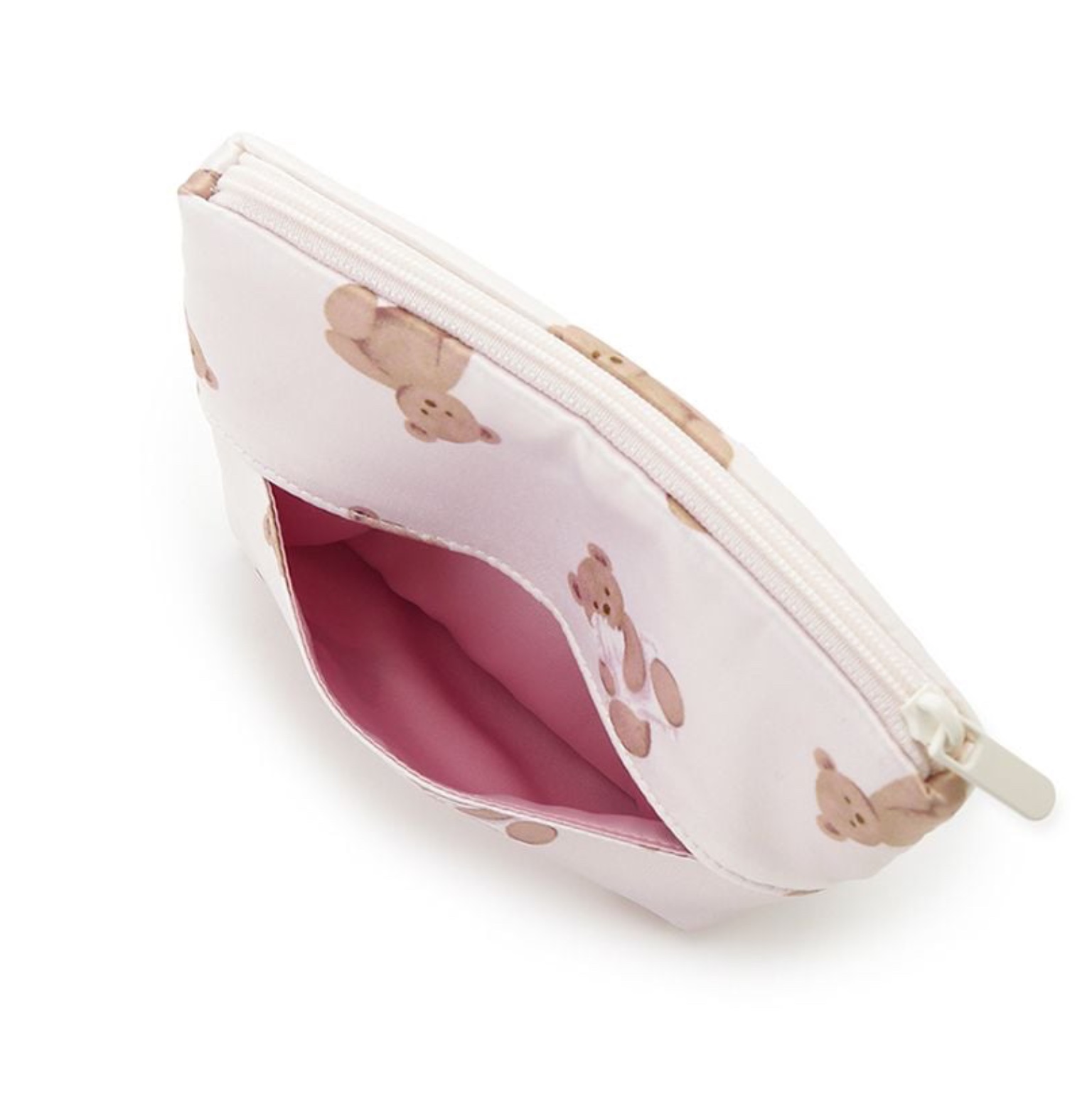 お座りしたり、まくらを抱えたベアをプリントした可愛いカラーリングのティッシュポーチです。