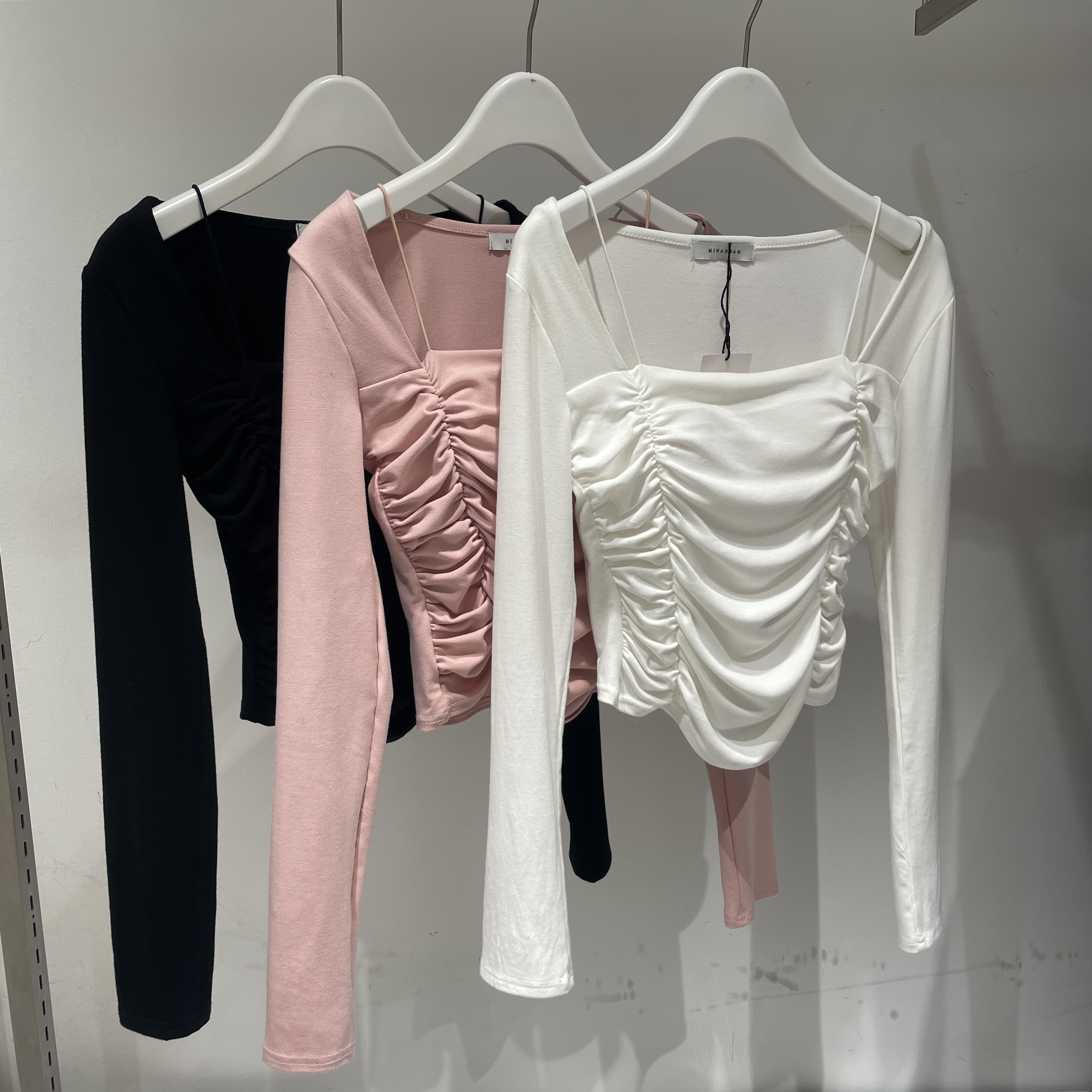 フロントのシャーリングデザインが可愛いトップス🤍