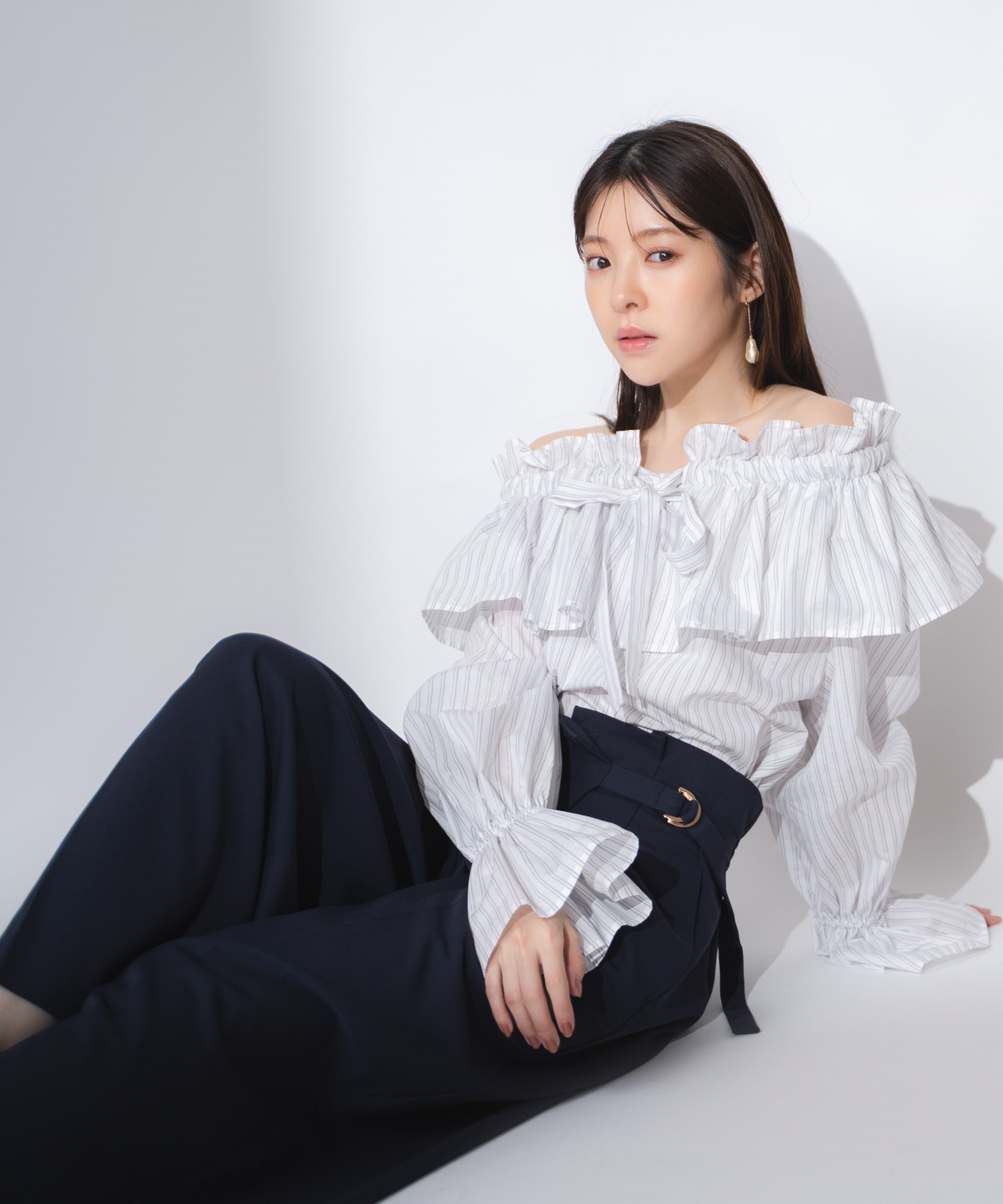 襟元はゴム仕様で、オフショルダーとしても着用でき、大人の抜け感ある肌見せを楽しめます。
