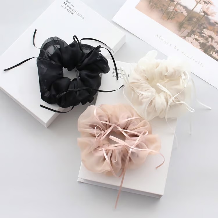 シアー素材でボリューム感とリボンがついていて可愛いシュシュです♡