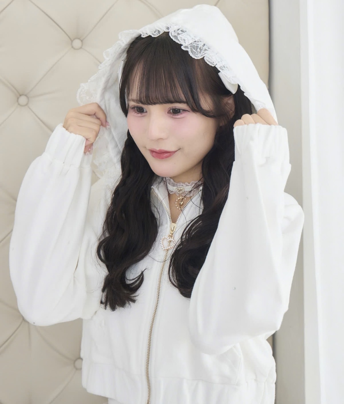 こだわりを詰め込んだ、ROJITAらしいディテール重視のショートパーカー♡ラインストーンを散りばめ、きらめくデザインがコーデを格上げ◎ハート型のファスナーチャームや、ポケットにあしらったリボン装飾が甘さを添えます。コンパクトな丈感で、ワンピースやボリュームボトムとも好バランス。