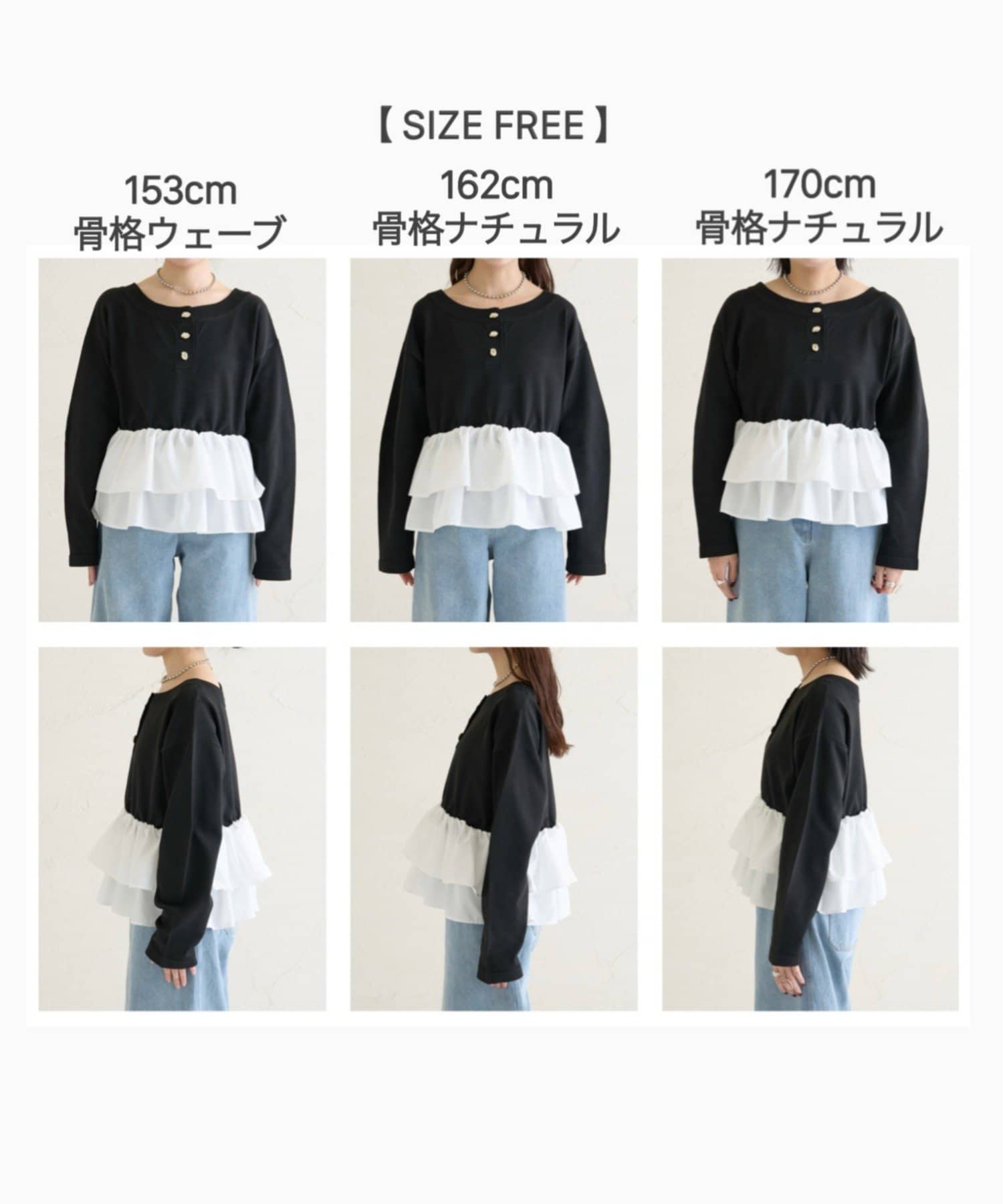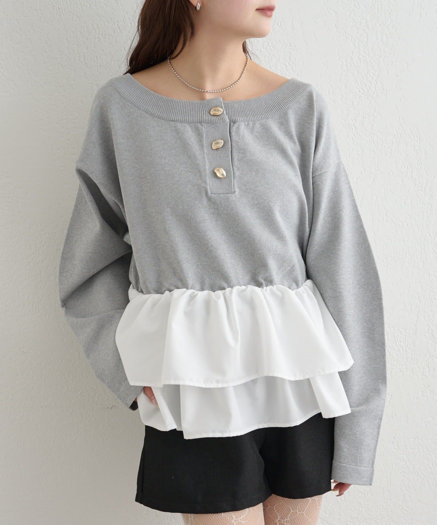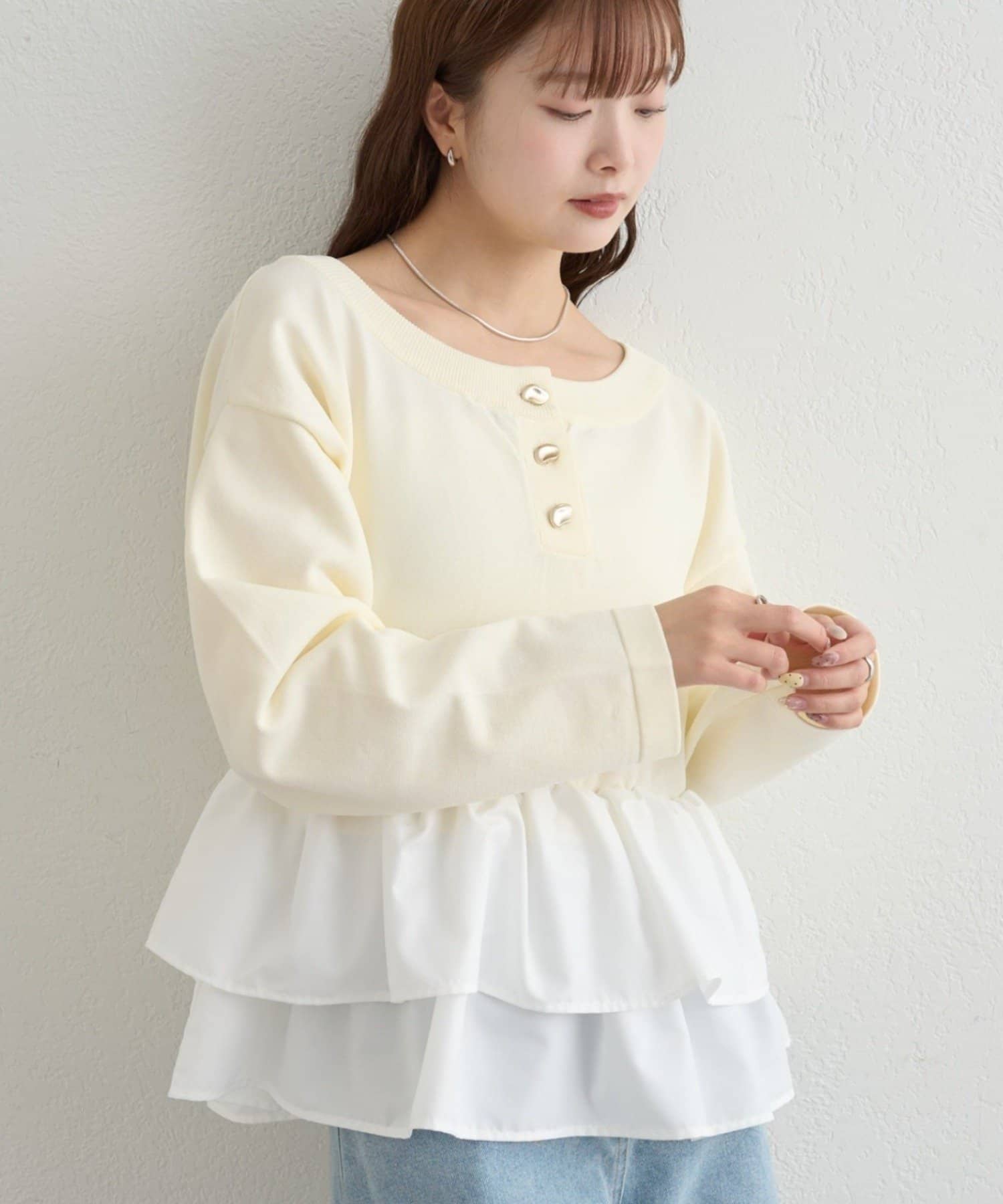 デニムやスラックス合わせでペプラムのあまさを抑えた大人カジュアルスタイルにも着ていただけます!