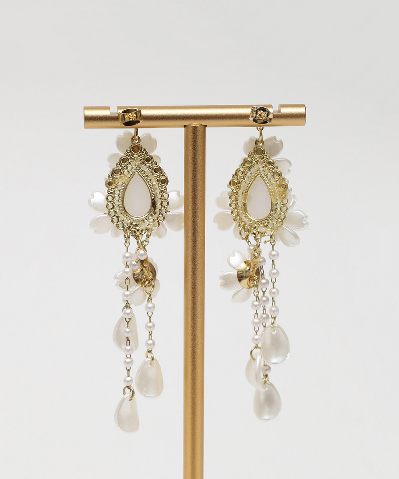 動くたびに上品に揺れる存在感抜群のコンビネーションが女性らしさを演出し、耳元を華やかに彩ります。