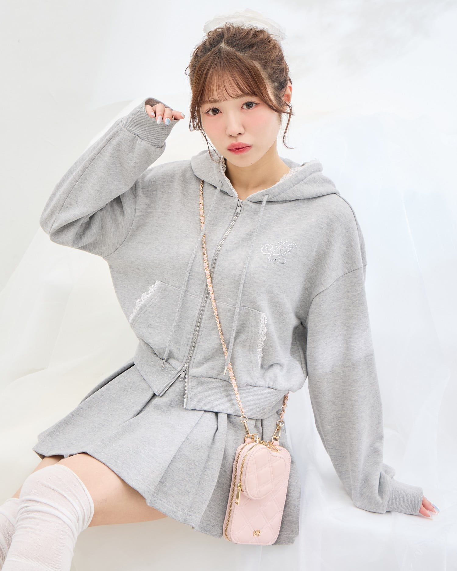 ⚫︎1261-100164 レース付胸ロゴスウェットショートジップパーカー(セットアップ対応)