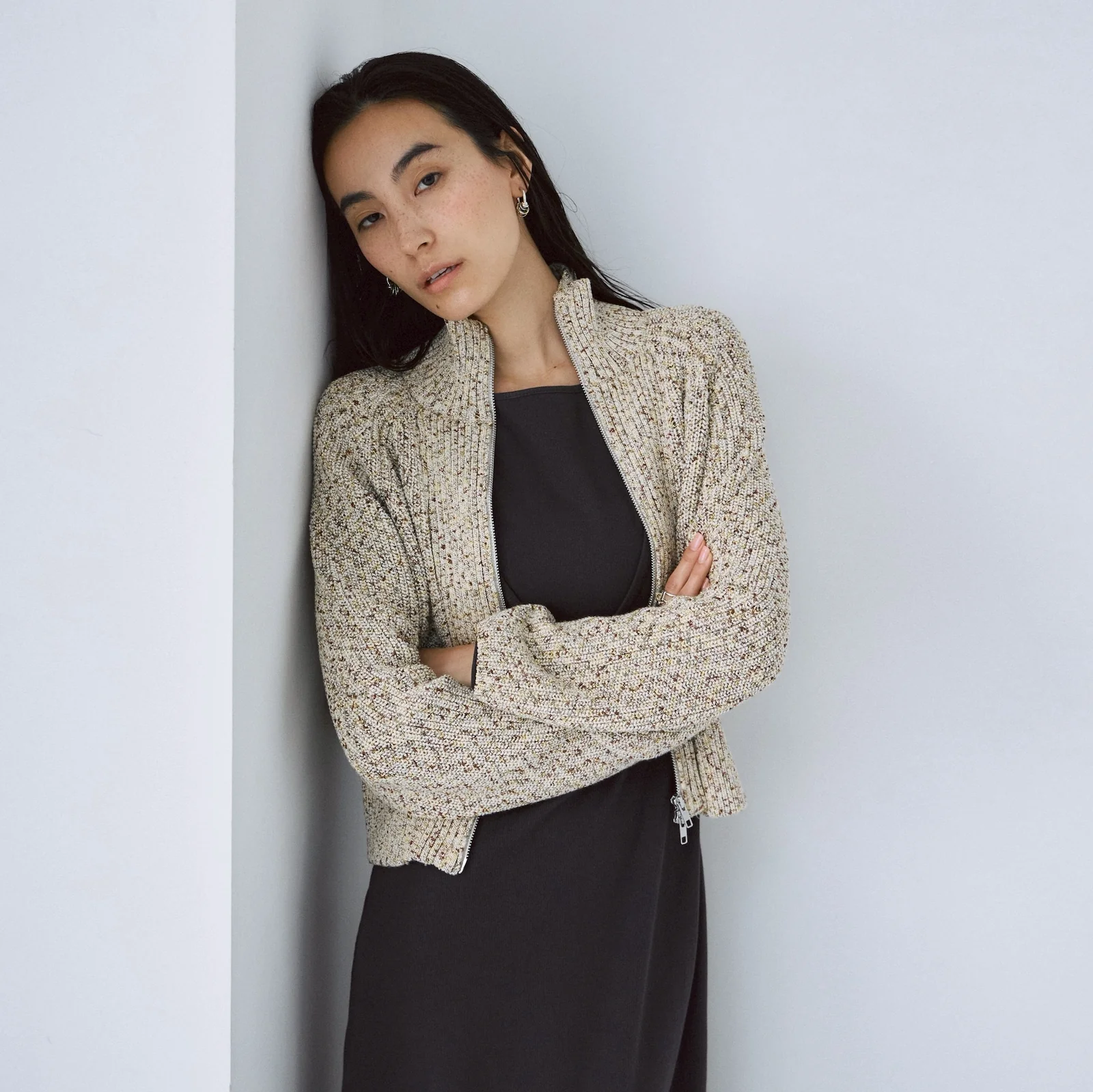 昨年大好評のネップ素材が、羽織りとしても便利なブルゾンタイプで新登場。