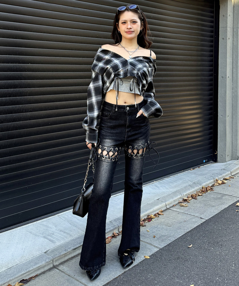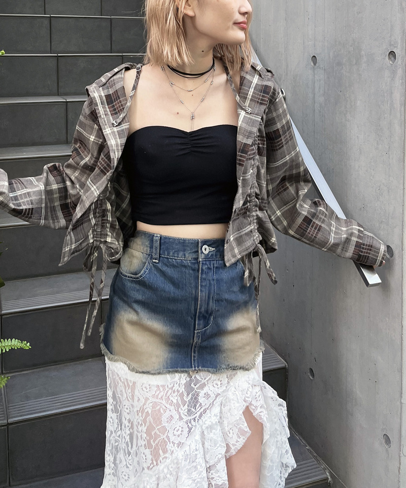 シャツ羽織りとしてカジュアルに、ショートトップスとしてレイヤードコーデに、